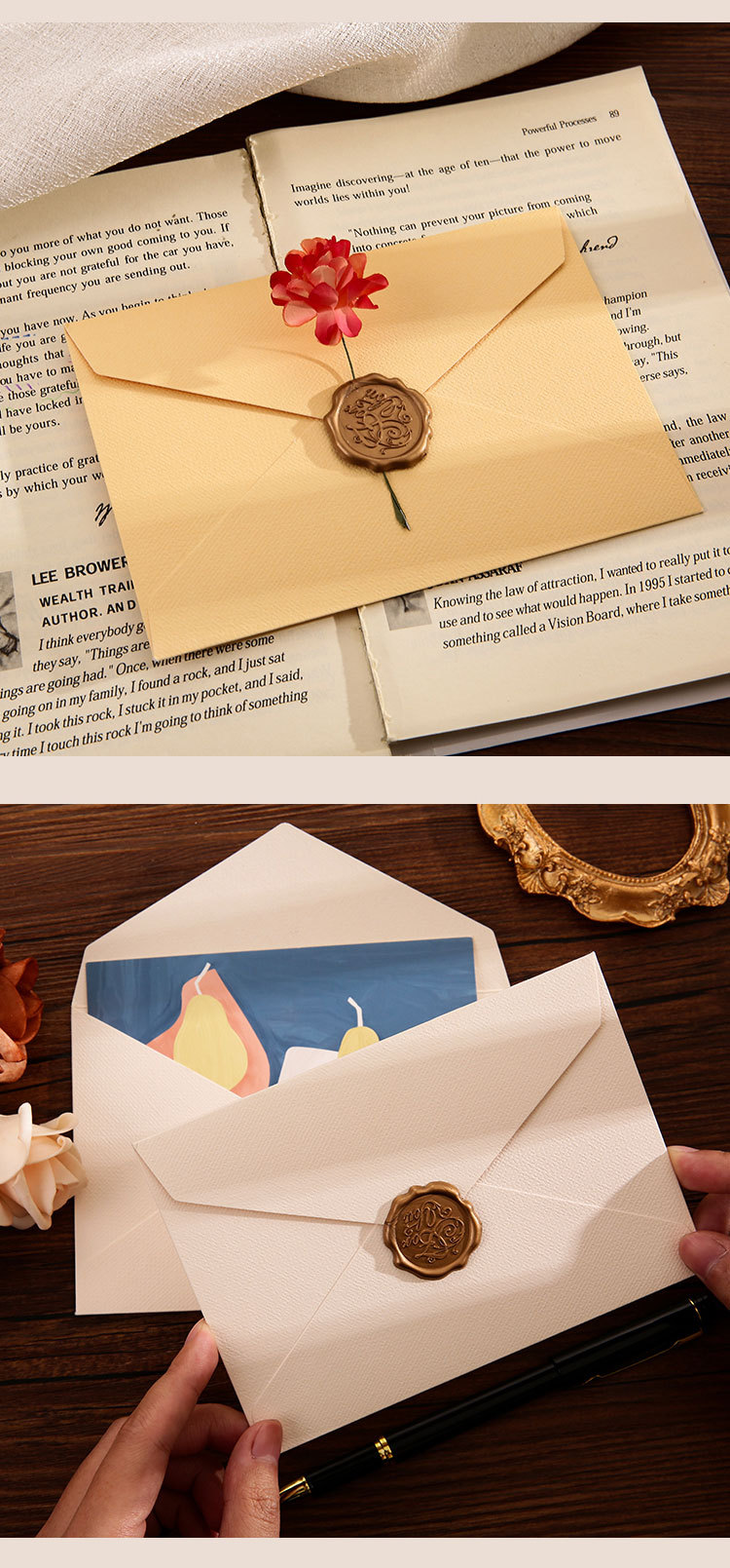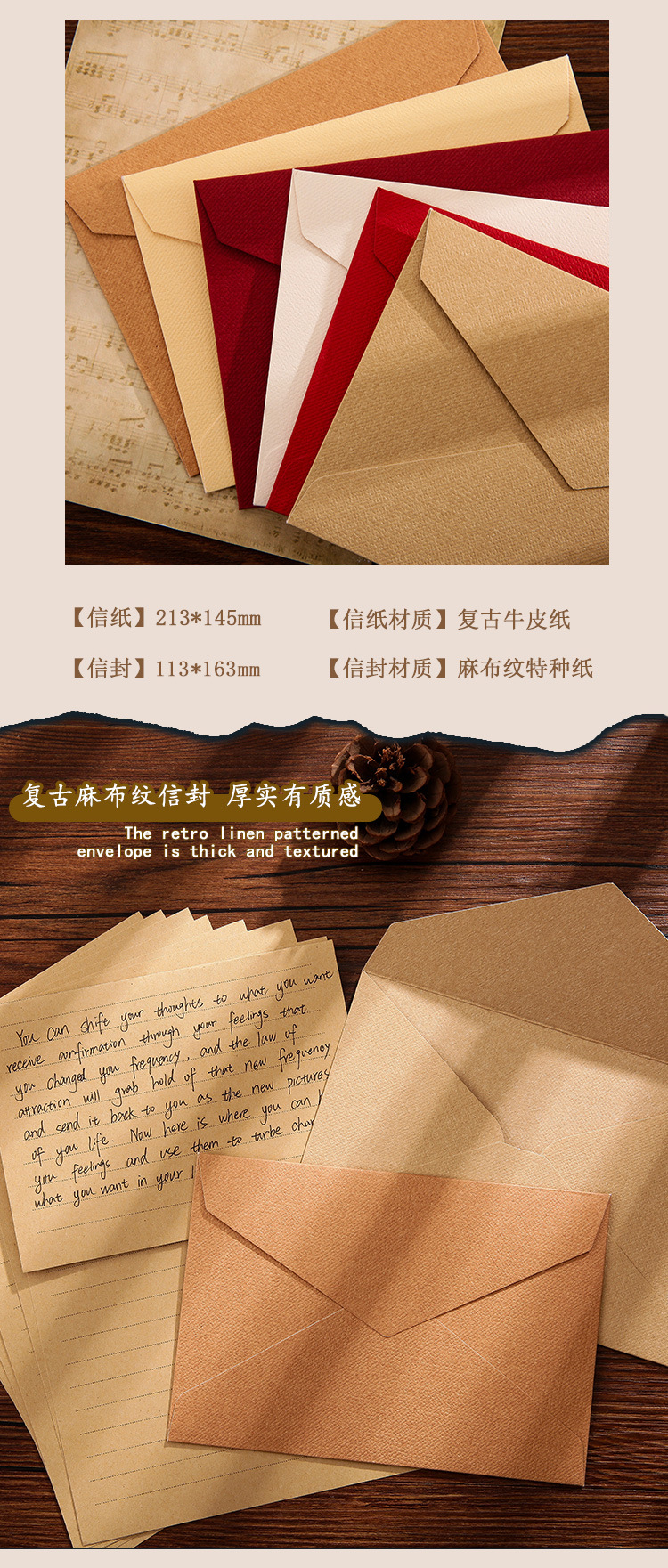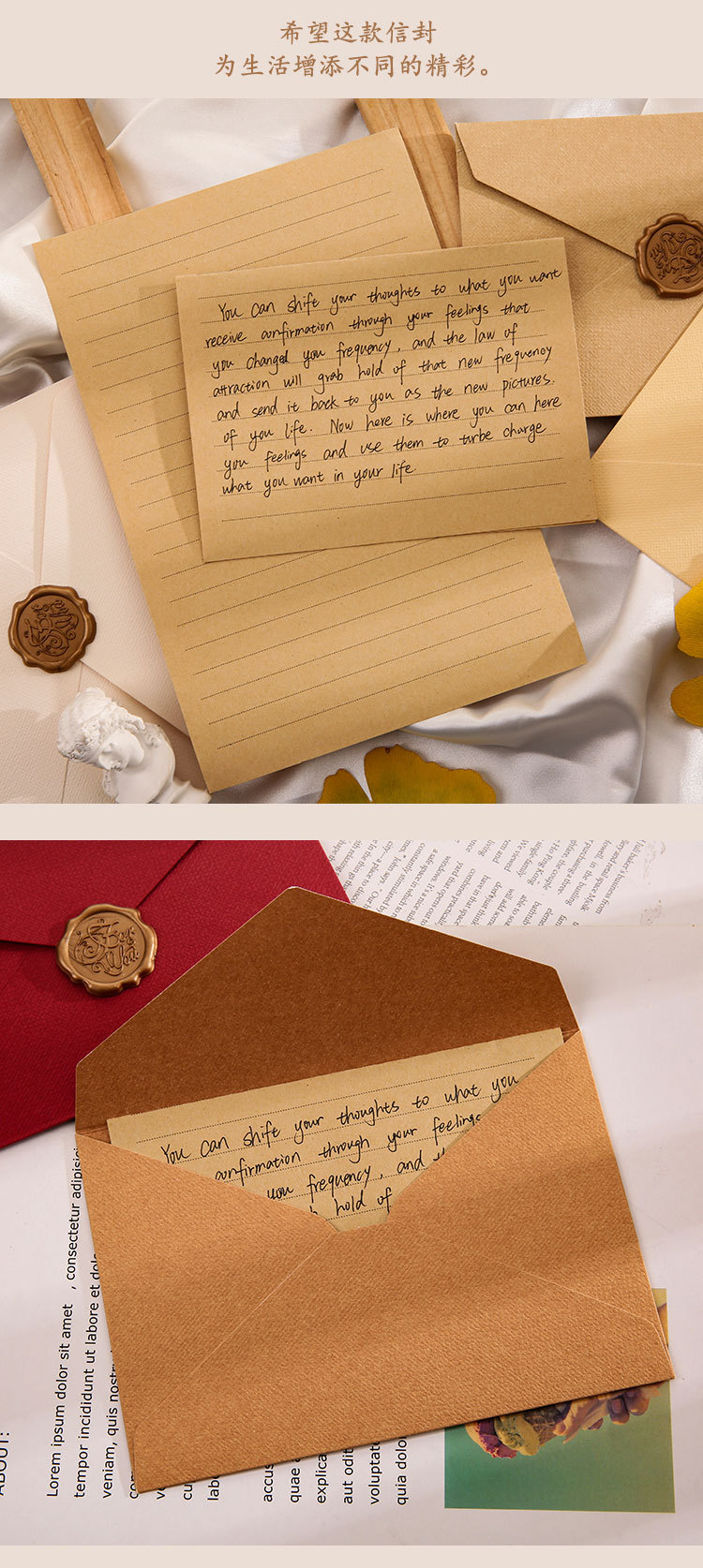 Sobre de lino grueso, juego de papelería de alta gama, carta de amor de confesión escrita a mano retro, carta de invitación con cabecera de carta de escritura de piel de vaca
