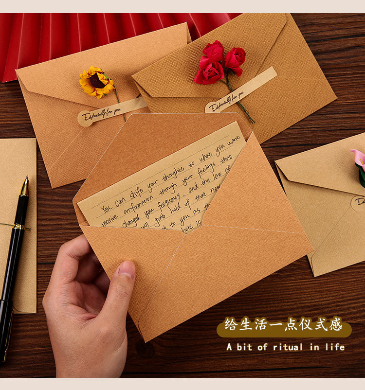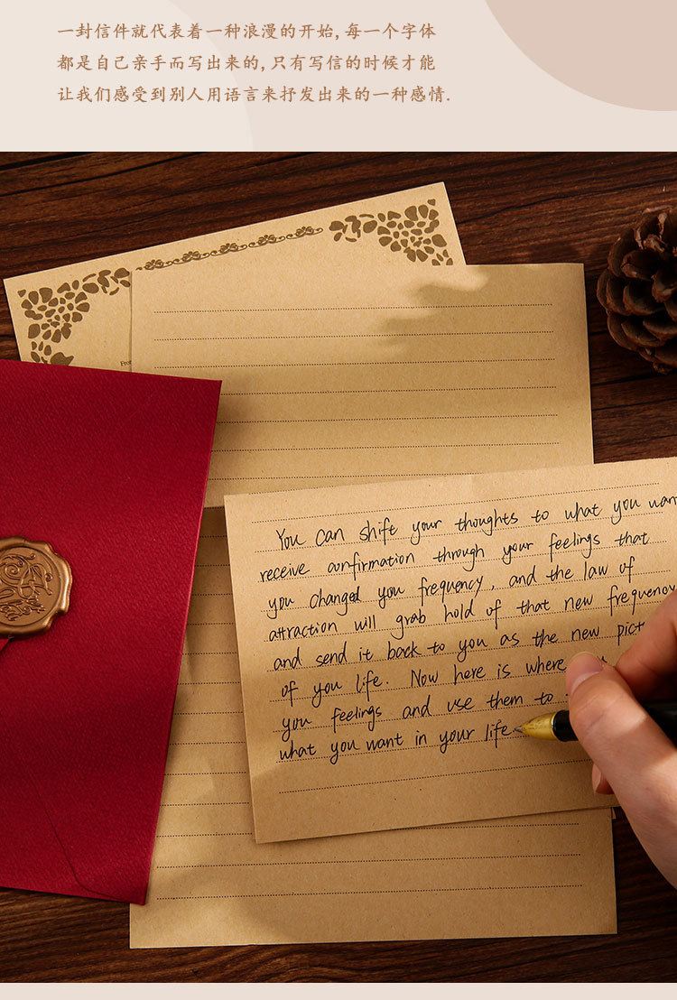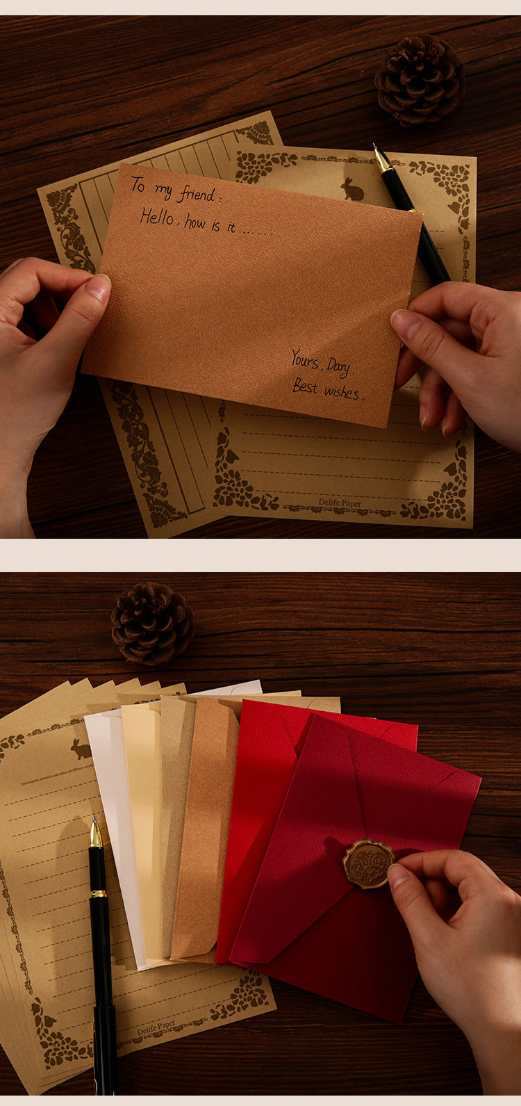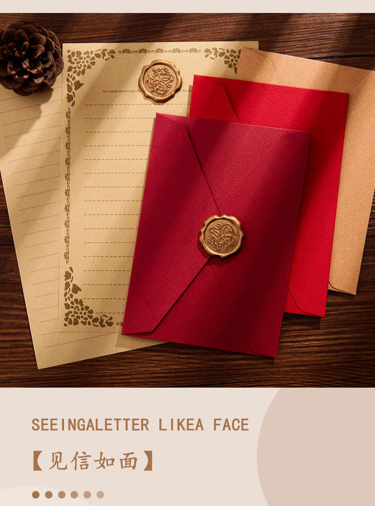 Sobre de lino grueso, juego de papelería de alta gama, carta de amor de confesión escrita a mano retro, carta de invitación con cabecera de carta de escritura de piel de vaca