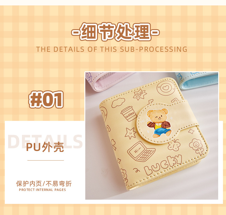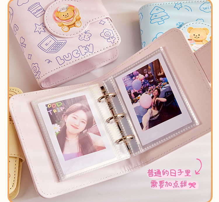 Bonito álbum de tarjetas de Gong Ge de alto valor de cara pu álbum de fotos de hoja de pulgada de botón magnético de chicas de 3 pulgadas de almacenamiento de tarjetas