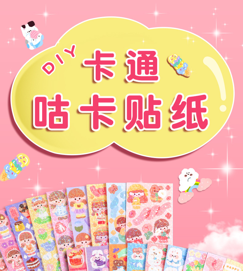 Pegatinas de tarjetas de niña y niños Goh Chuck Set DIY tarjetas antiguas hechas a mano pegatinas láser con pegatinas de corazón