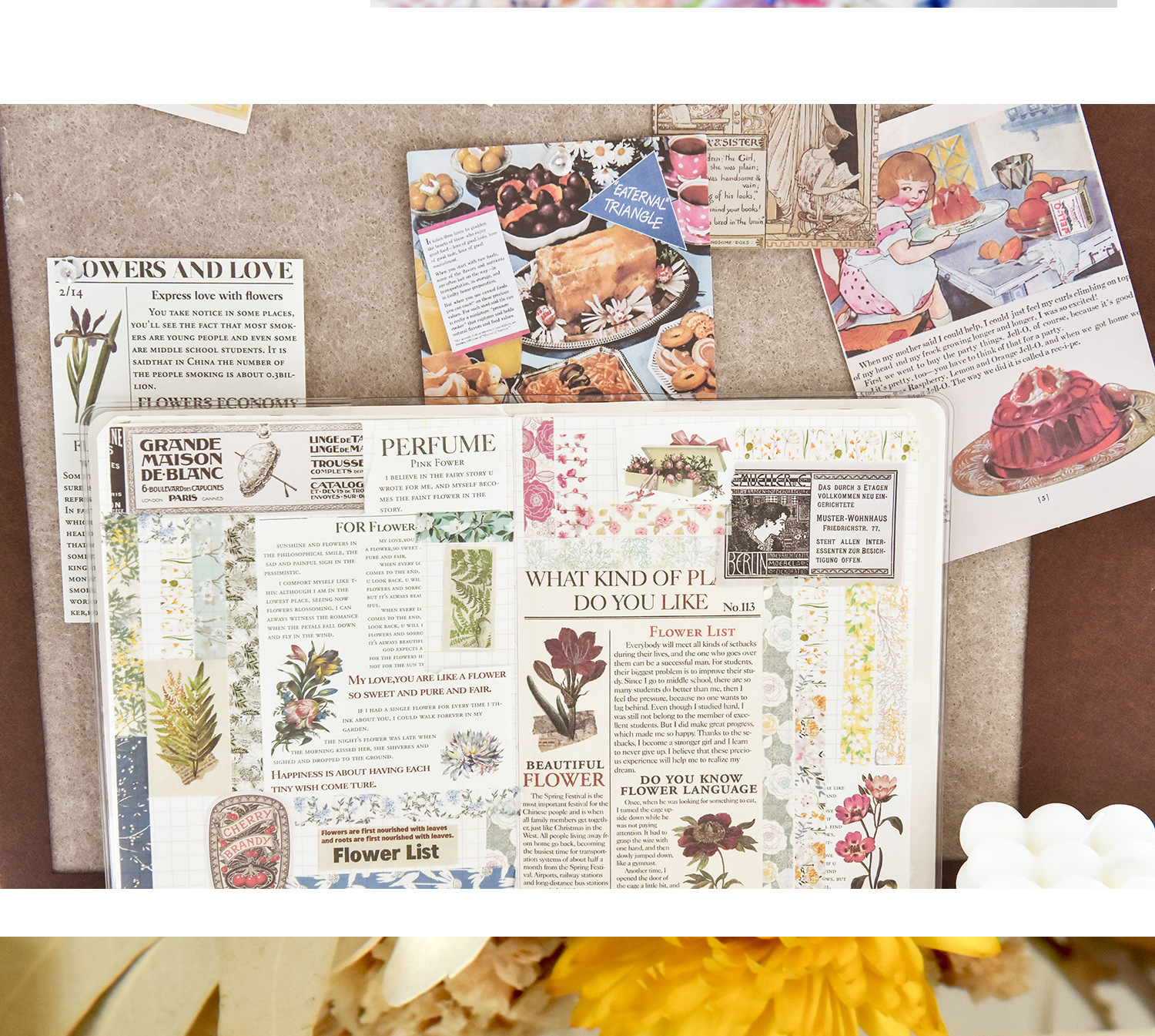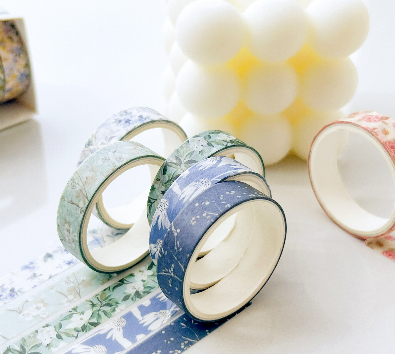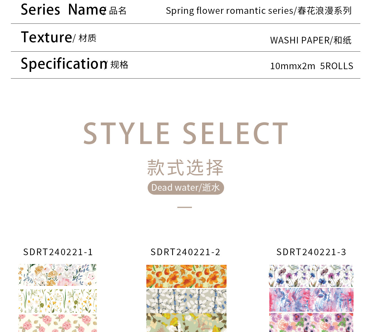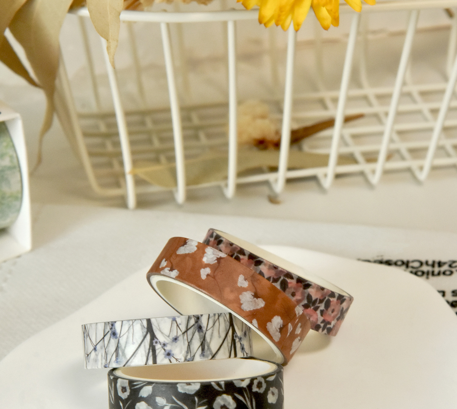 Flores de primavera, flores literarias románticas, flores frescas, flores pastorales, 5 rollos y cinta de papel, pegatinas de material de cuentas a mano combinadas
