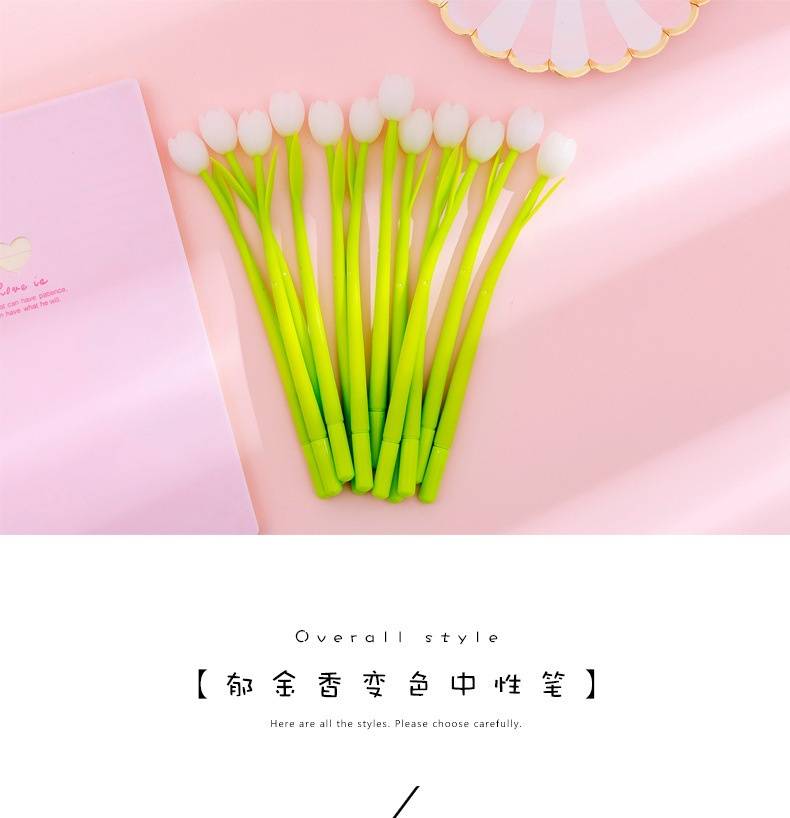 Corea del Sur creativo cambio de luz Tulip gel pen pequeño fresco lindo estudiante Oficina de escritura Negro Signature Pen