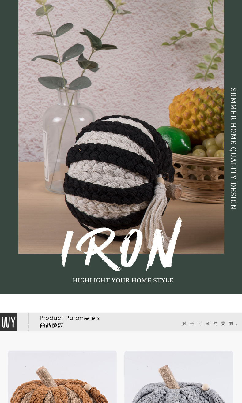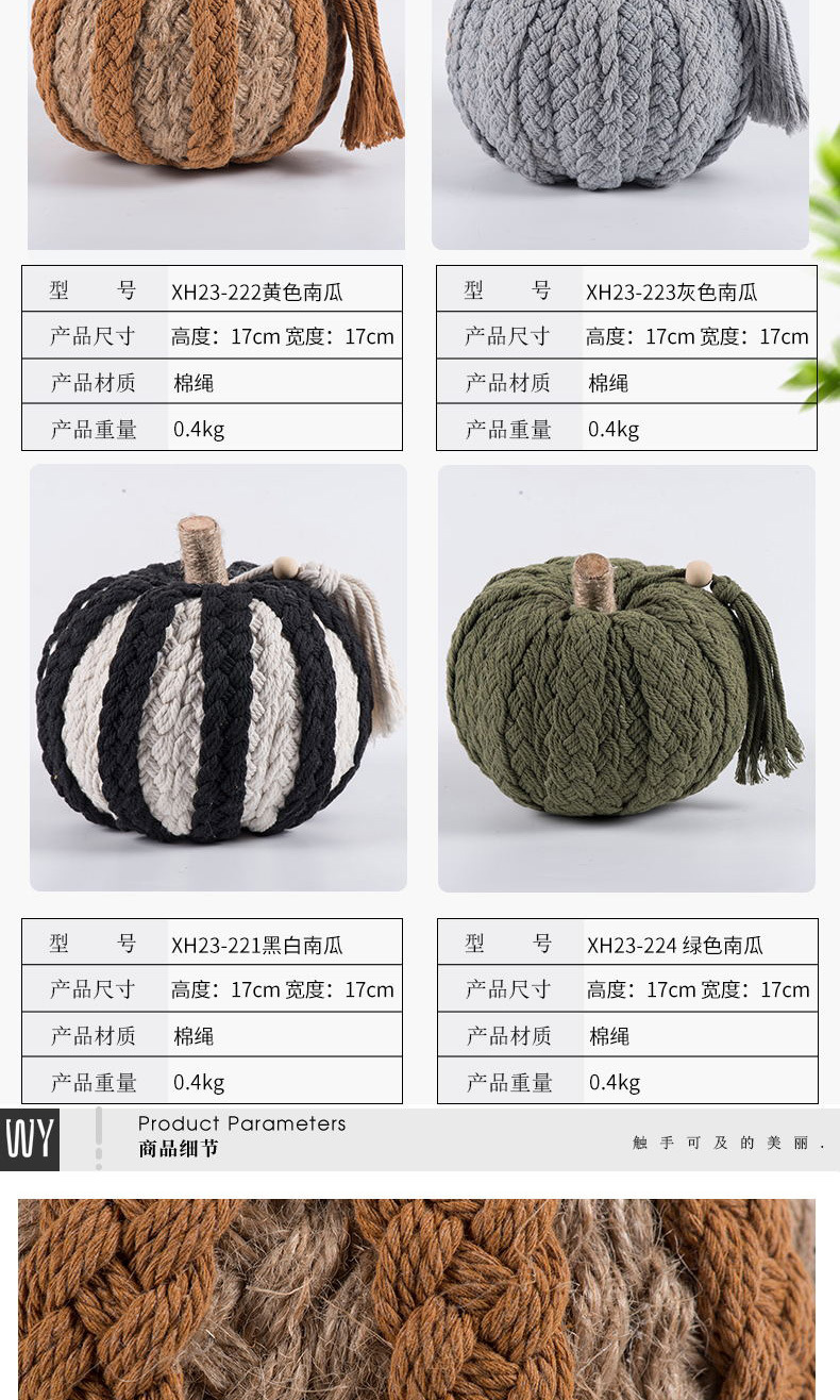 Acción de Gracias Halloween Cuerda de algodón Adornos de mesa de calabaza Festival de la cosecha Adornos tejidos a mano Accesorios de decoración navideña