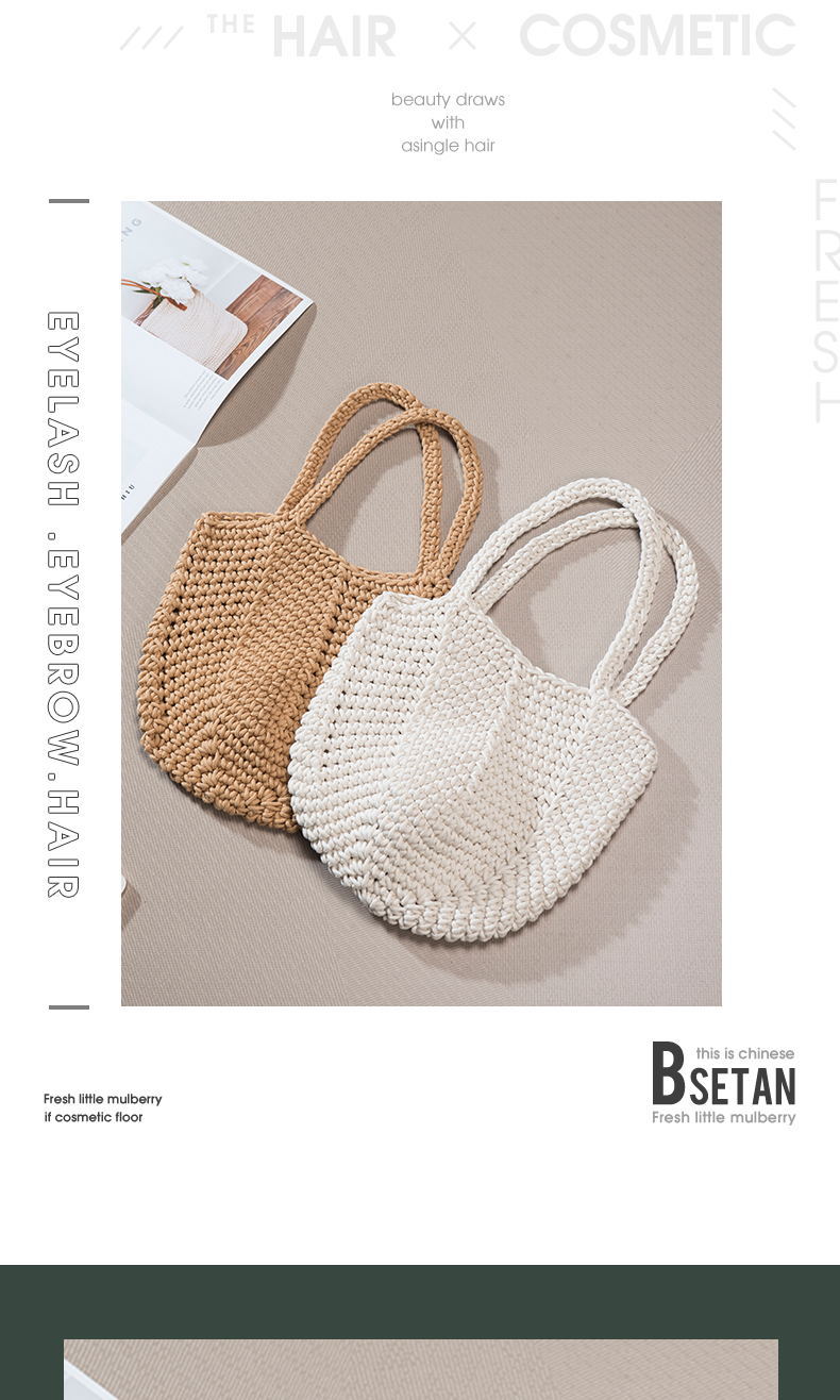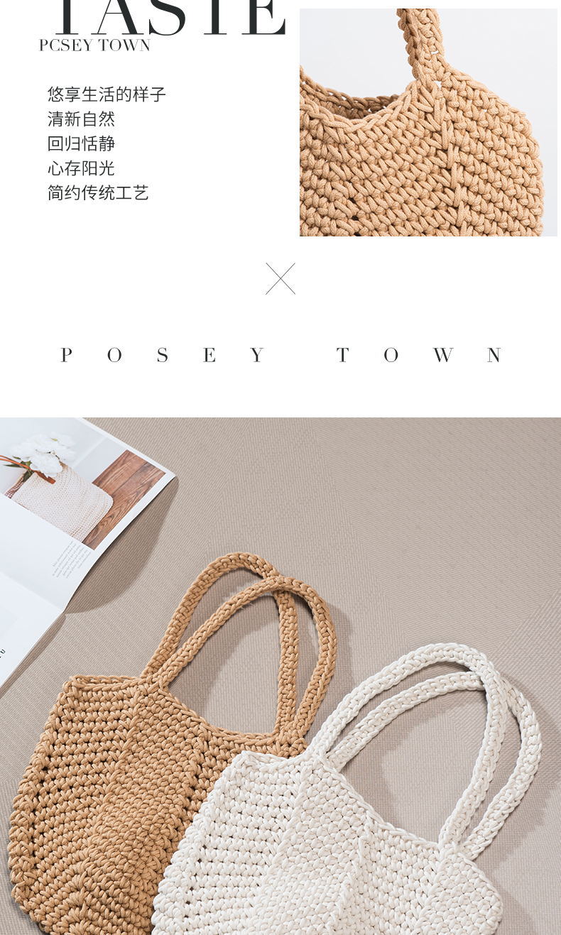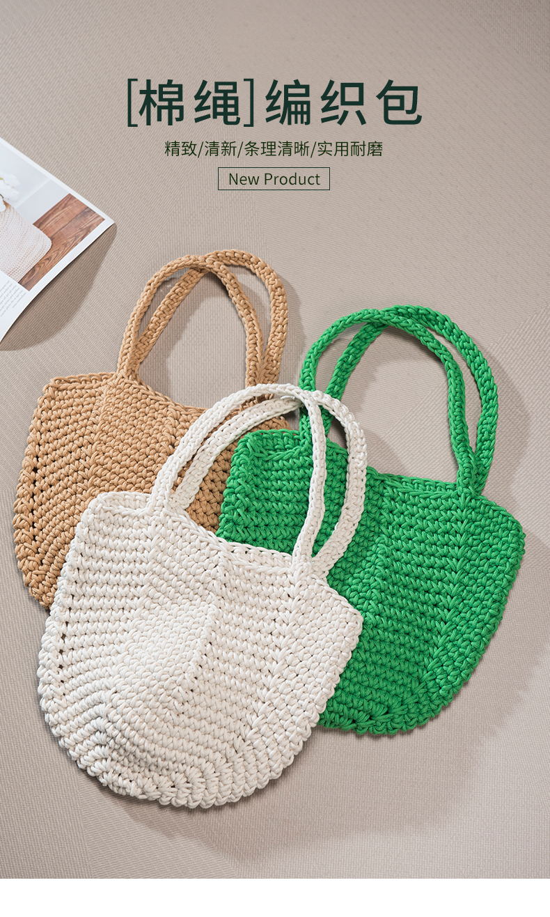 Bolsa de algodón tejida a mano, bolsa de cubo hueco, estilo coreano casual, versátil, bolsa de hombro, bolsa de playa