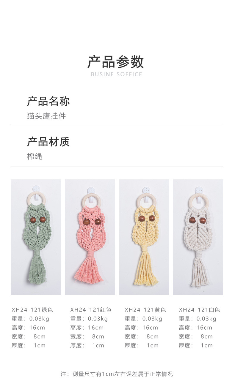 Colgante de cuerda de algodón tejido a mano colgante de búho macarón adornos creativos para el hogar colgante de cuerda de algodón tejido
