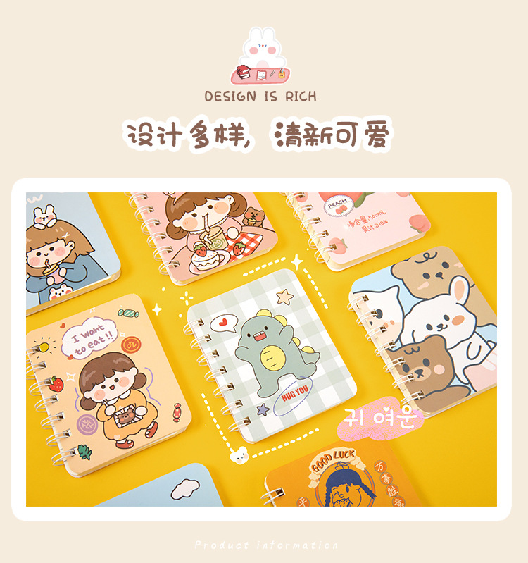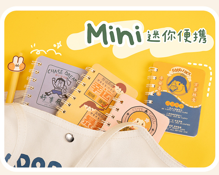 Cuaderno de dibujos animados de bobina pequeña lindo super lindo mini bolsillo portátil cuaderno de notas regalo para estudiantes de escuela primaria