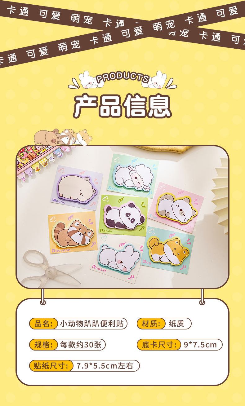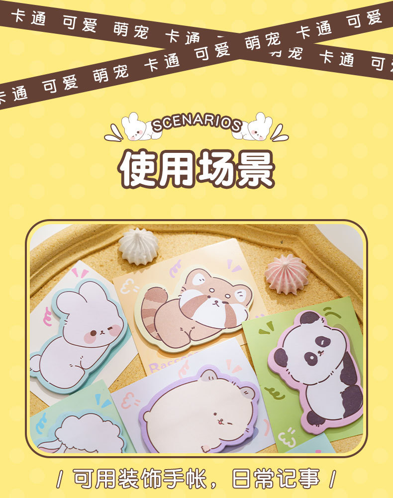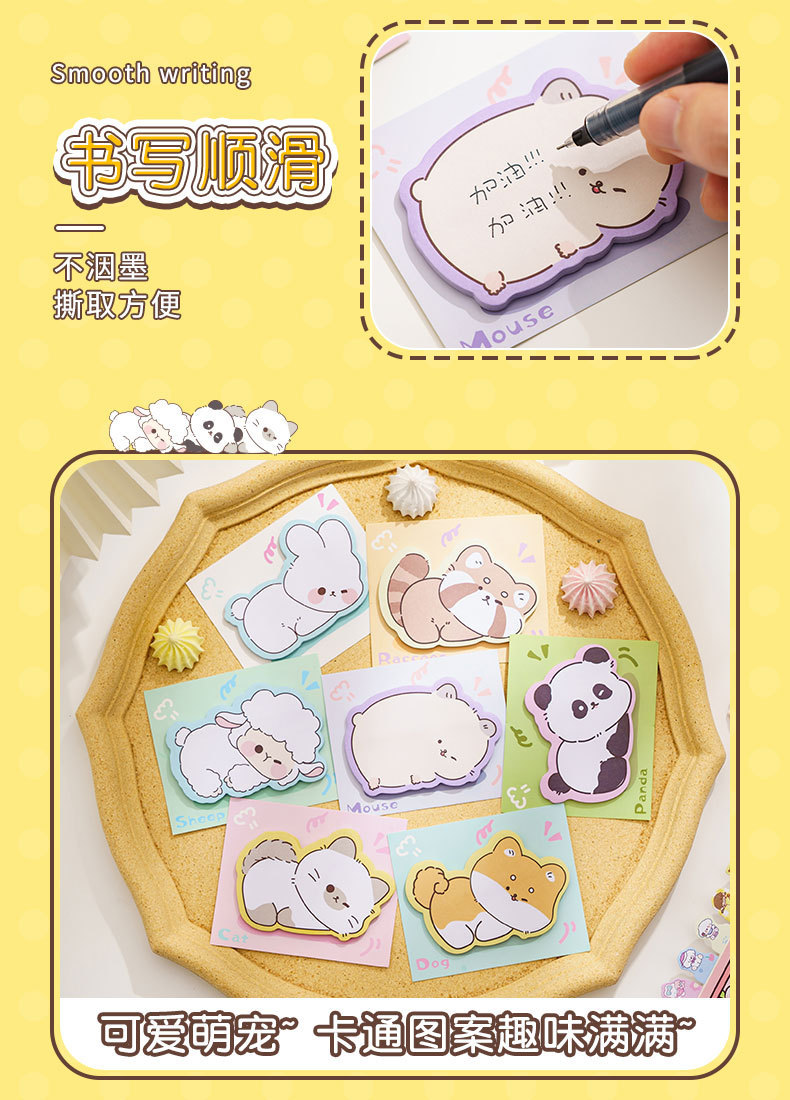 Lindo animal de dibujos animados notas adhesivas pegatinas n-times en forma especial para estudiantes de escuela primaria escribiendo marcas etiquetas pegatinas libro de notas desgarrable