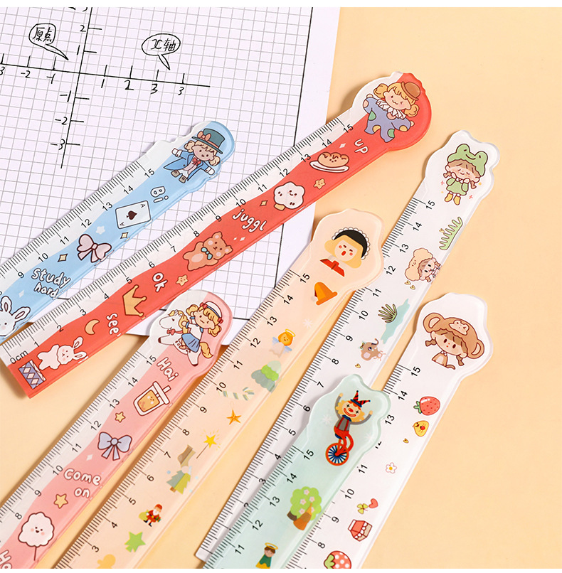 Creativo de dibujos animados magnéticos reglas suaves de forma extraña estudiantes lindos con reglas rectas de 15cm en el corazón de una niña interesante regalo de apertura escolar