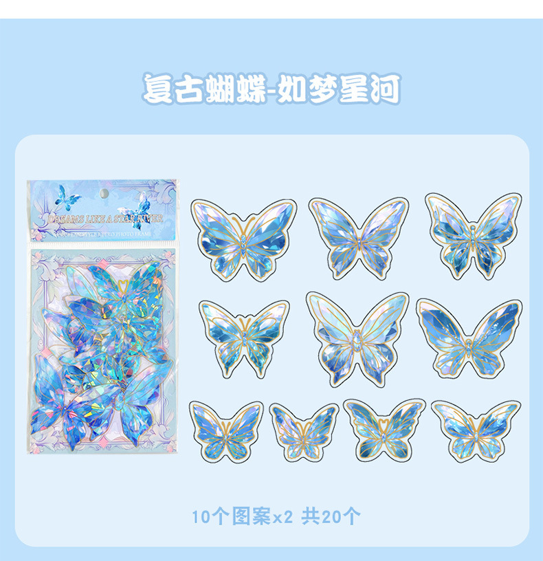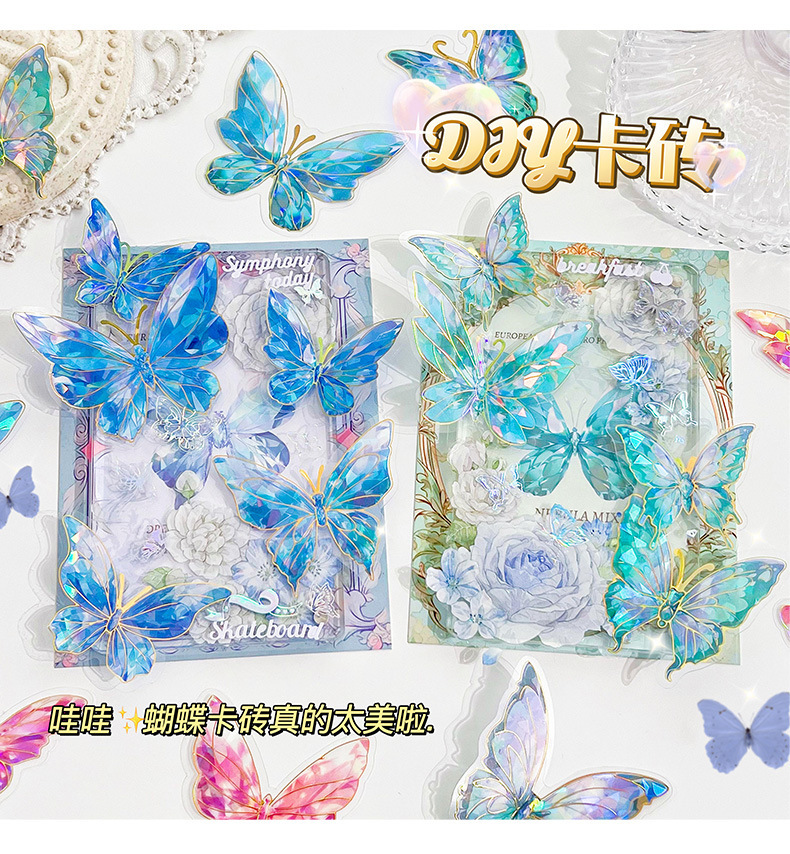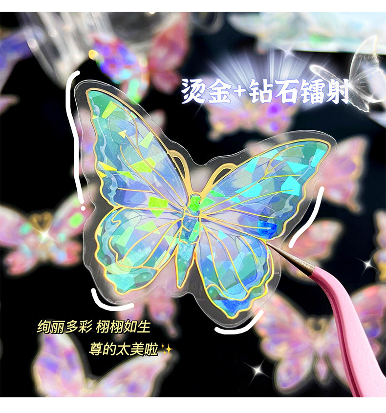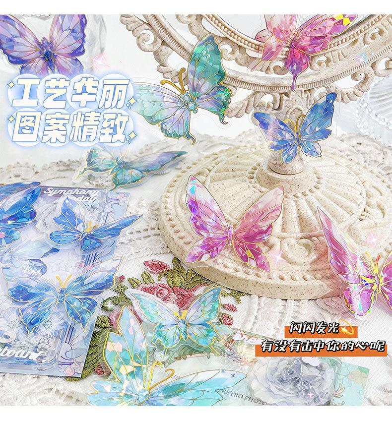Retro estampado mariposa PET cuentas pegatinas paquete láser estereoscópico tarjeta de flujo de cáñamo cuentas DIY material de decoración pegatinas