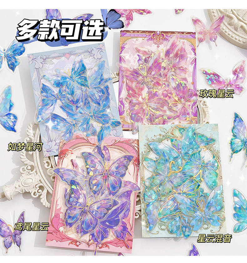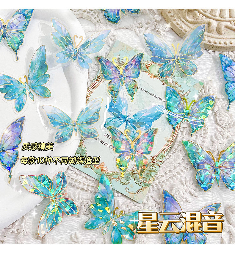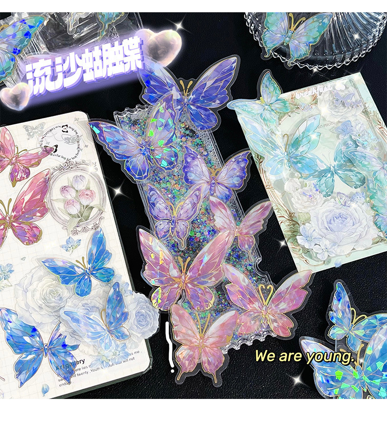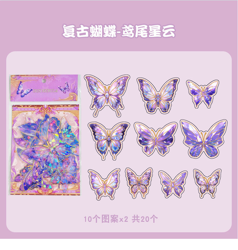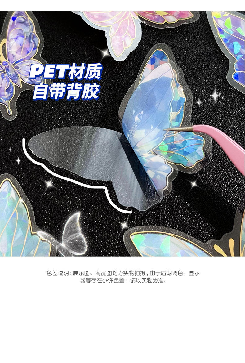 Retro estampado mariposa PET cuentas pegatinas paquete láser estereoscópico tarjeta de flujo de cáñamo cuentas DIY material de decoración pegatinas