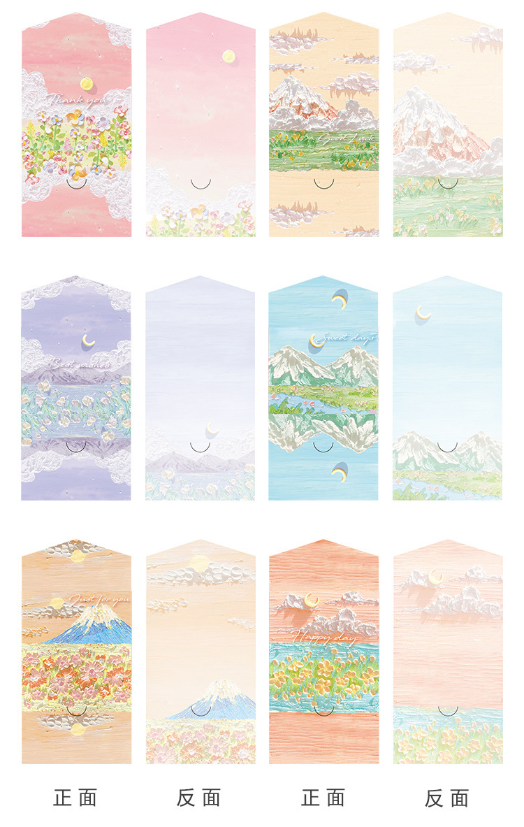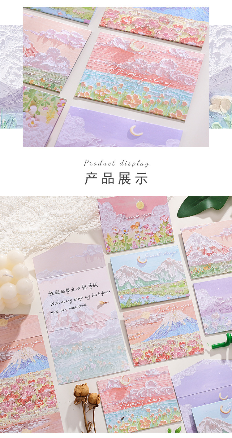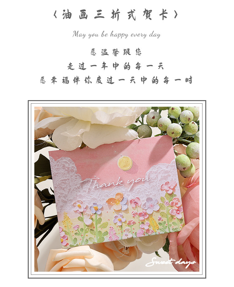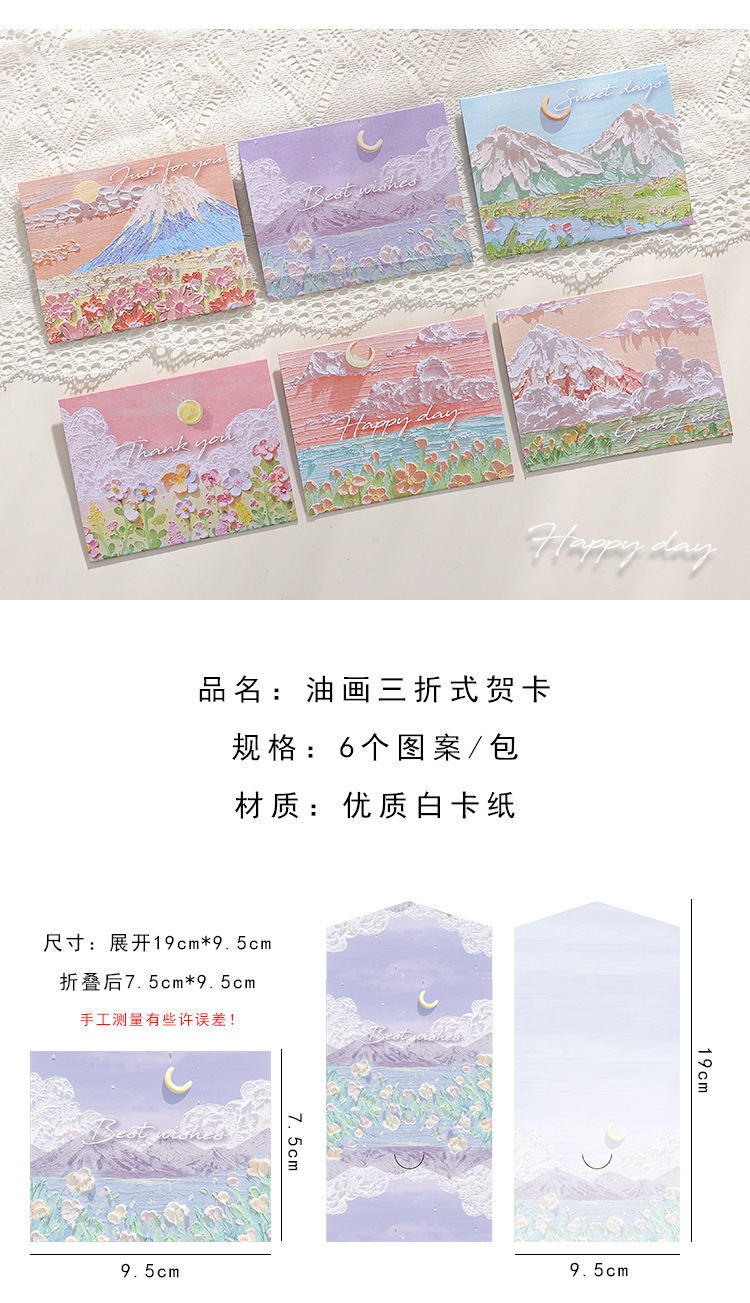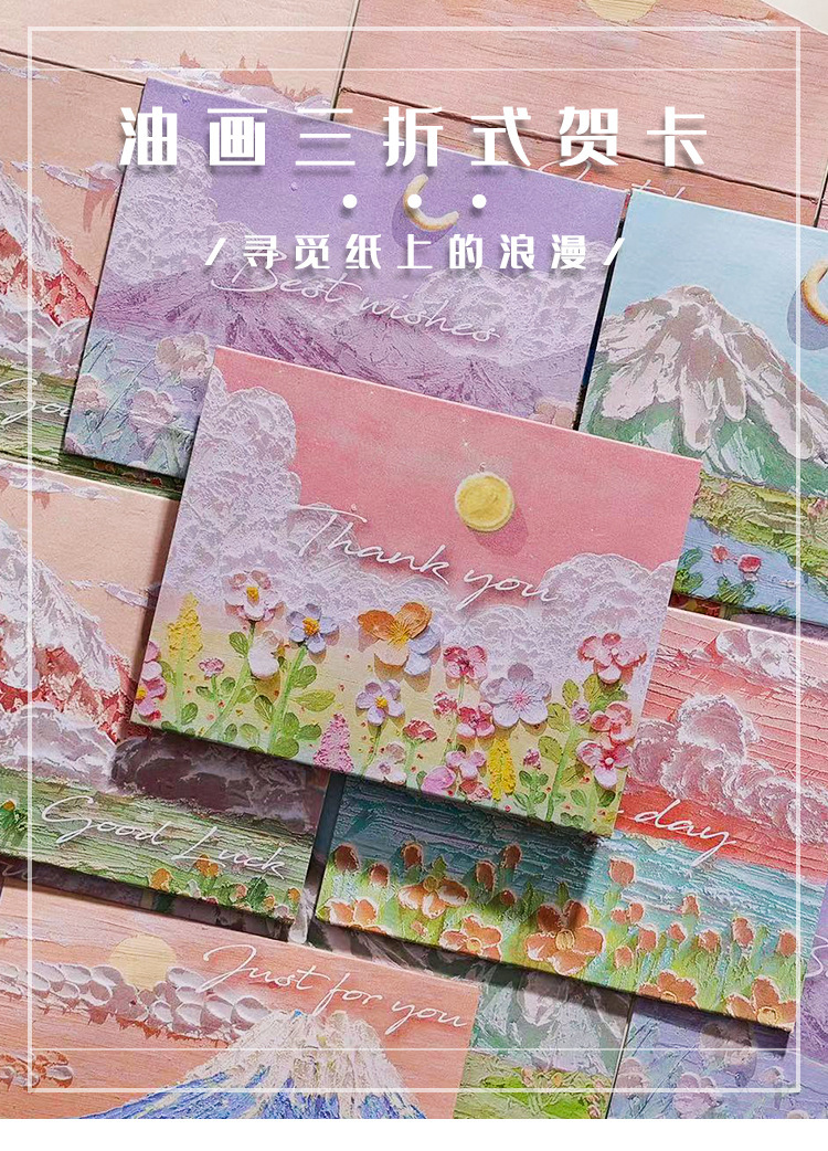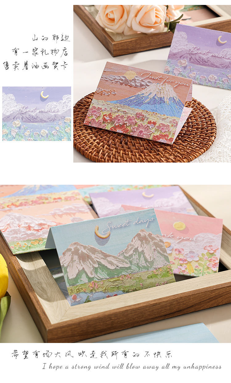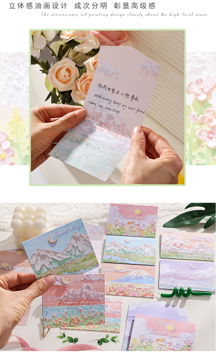 Pintura al óleo de paisaje simple sobre de tarjeta de felicitación triple ins Sense premium Festival de cumpleaños de los niños Tarjeta de mensaje en blanco de escritura a mano