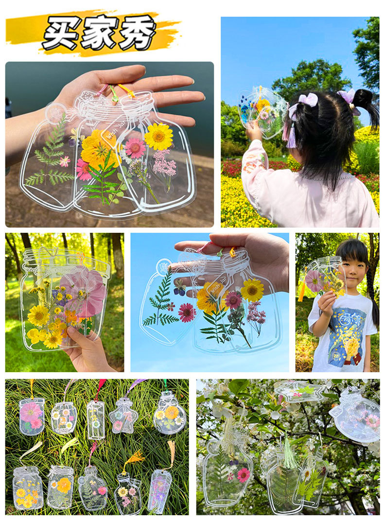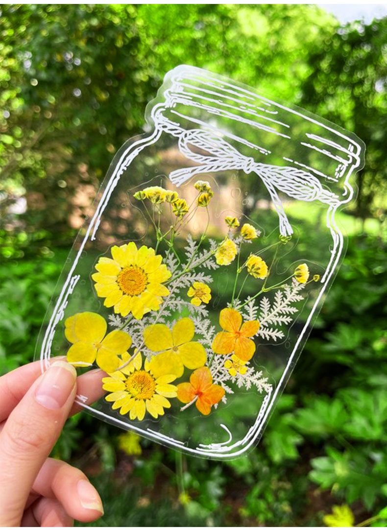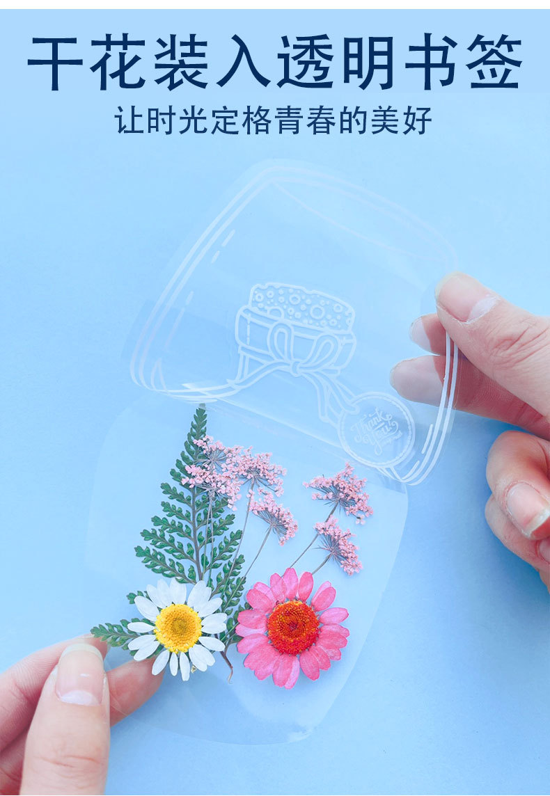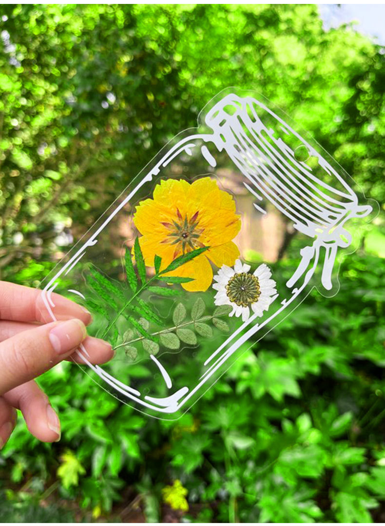 Marcapáginas de flores secas, material artesanal hecho a mano, colección infantil de otoño, libro en la botella, espécimen de hoja transparente, película de sellado de plástico