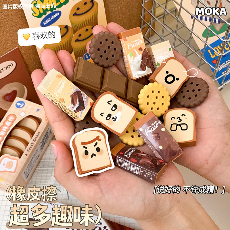 Simulación de alimentos galletas de chocolate pan borracha lindo estilo interesante estudiantes pieles de elefante papelería premios para estudiantes