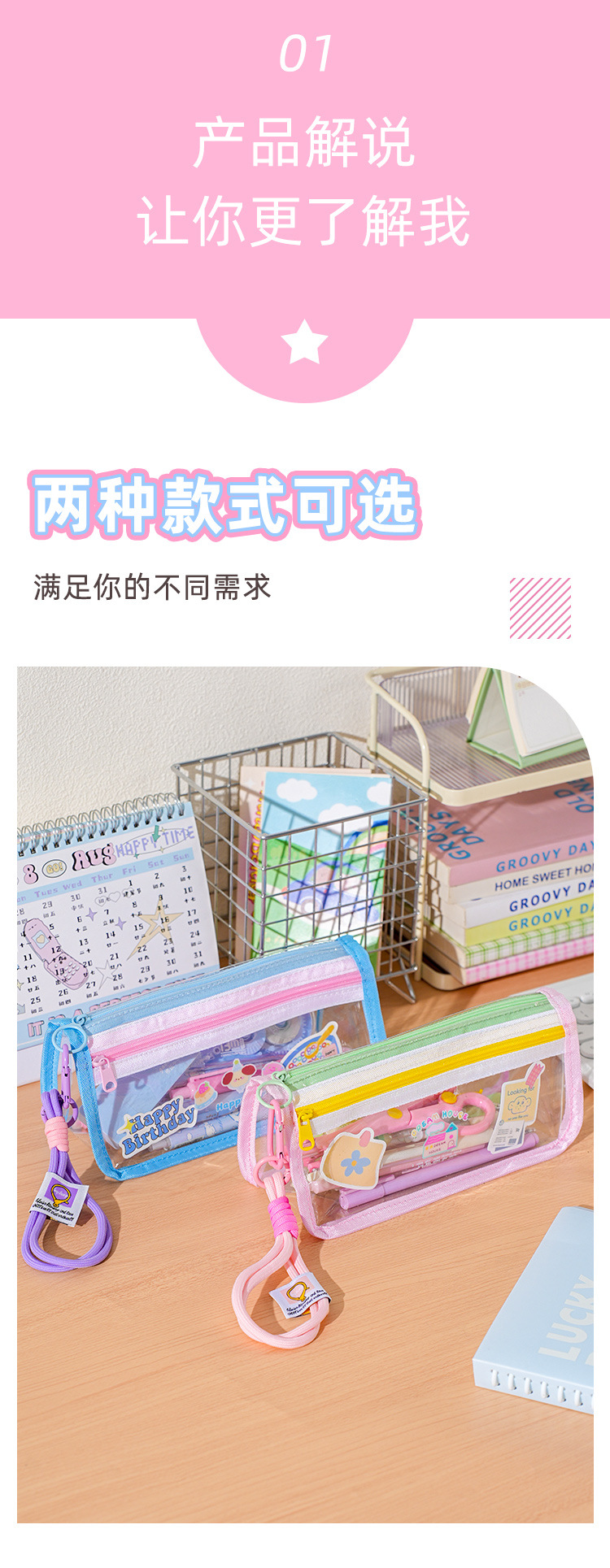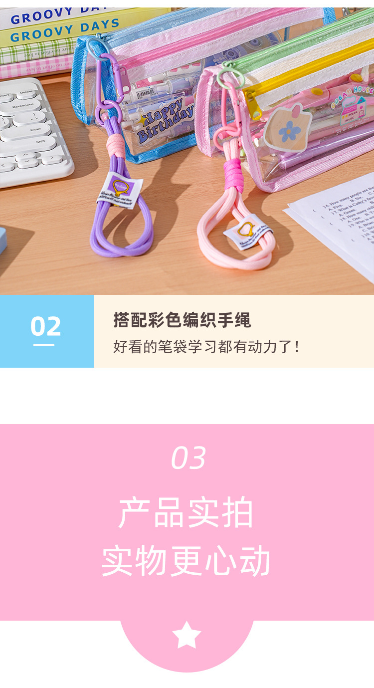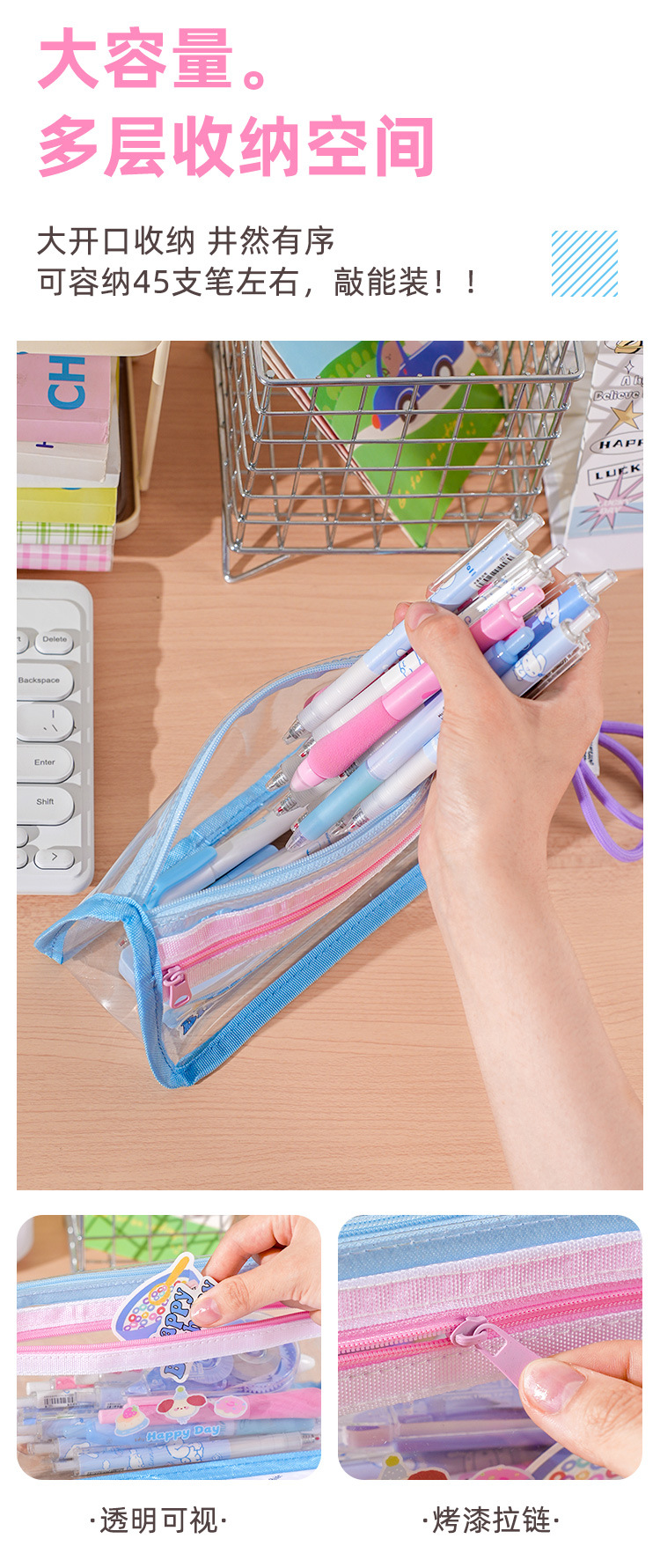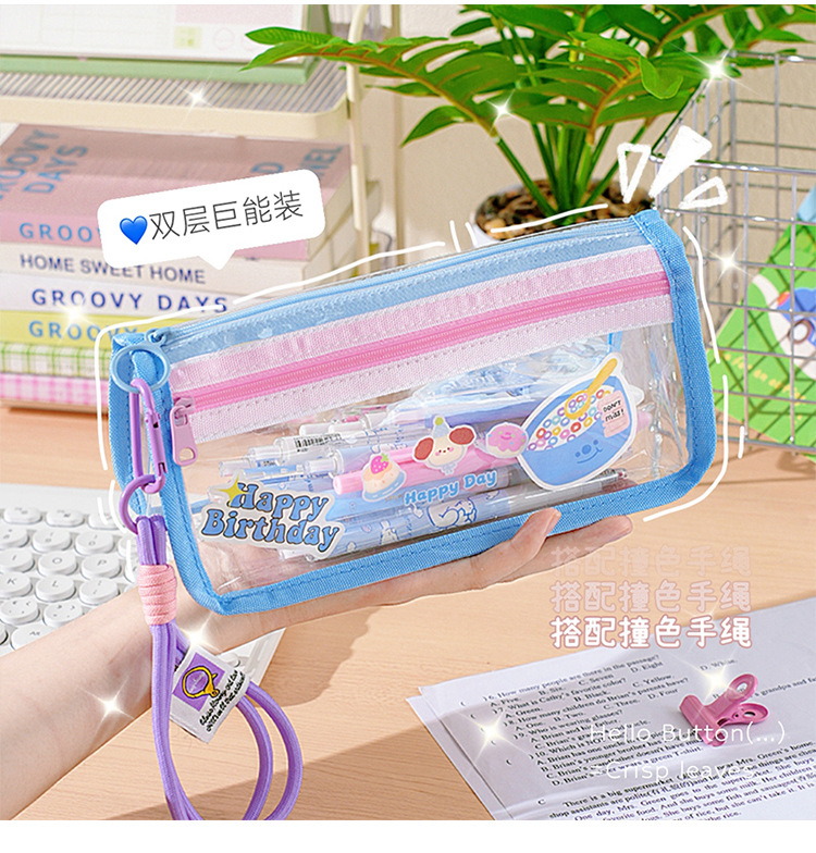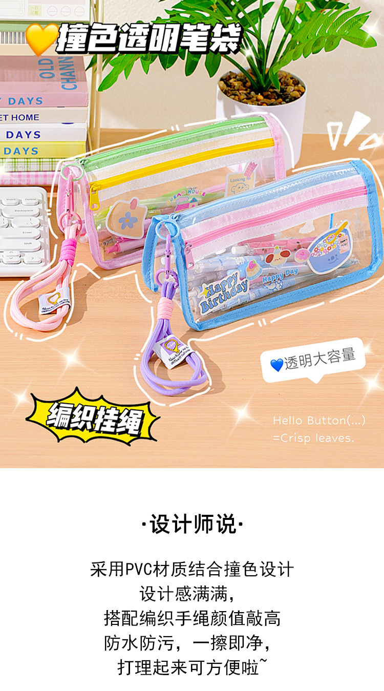 Bolsa de lápices transparente de color de contraste infantil especial para examen de ingreso a la escuela secundaria de gran capacidad bolsa de papelería de examen de ingreso a la universidad caja de lápices simple de alto valor
