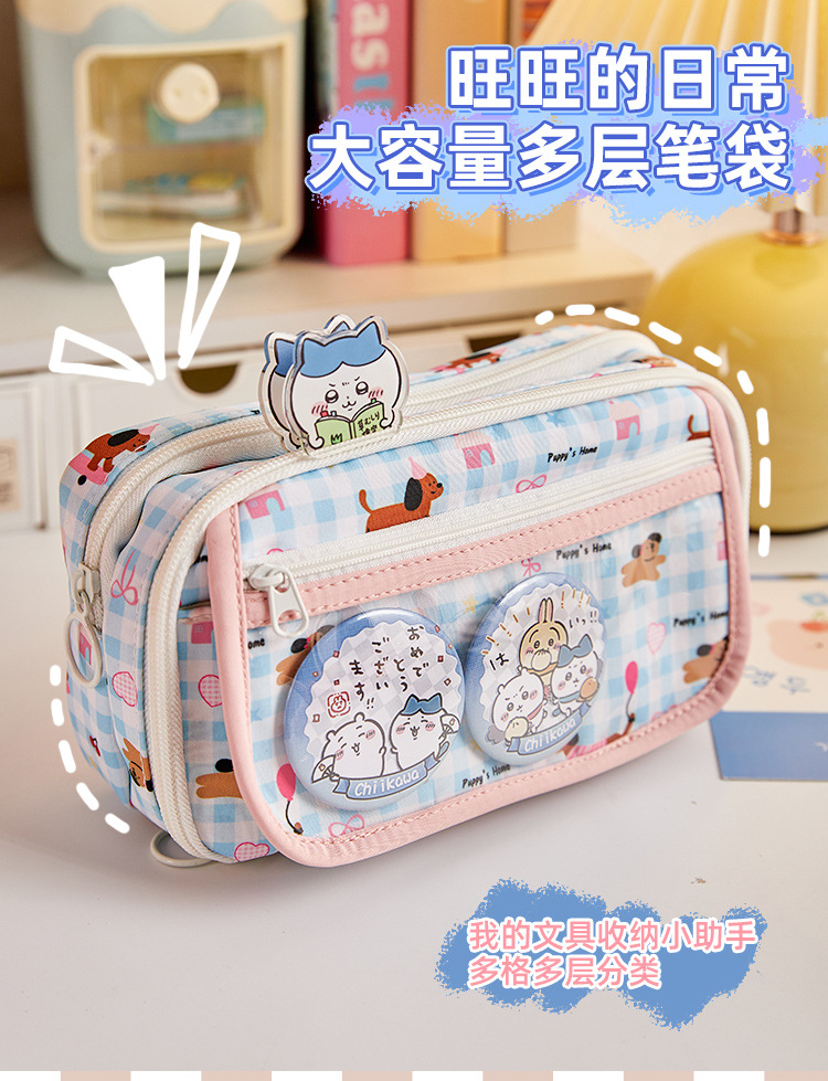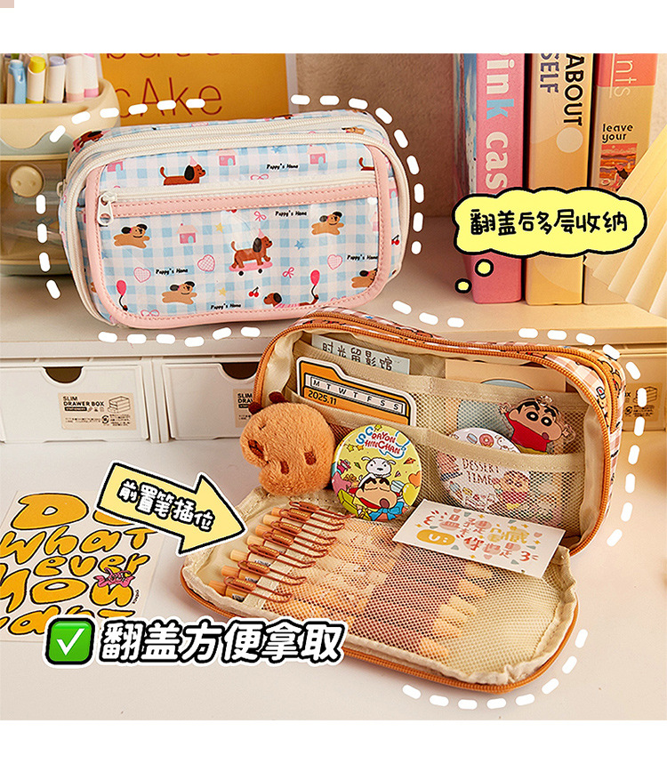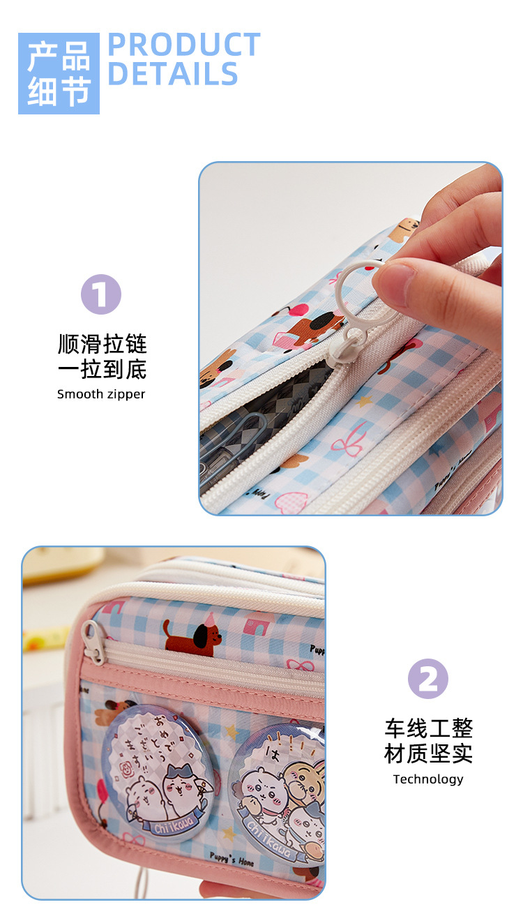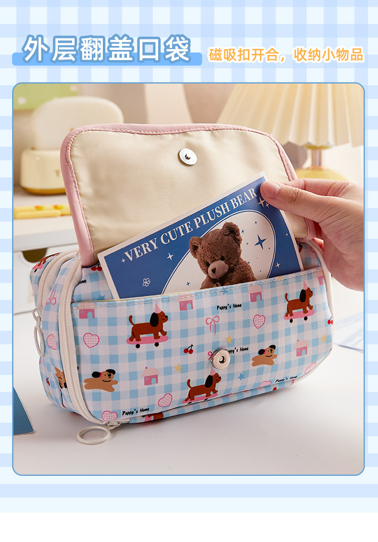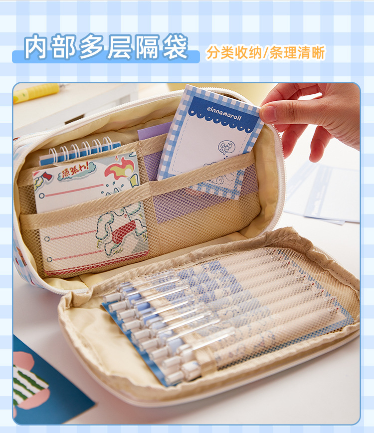Nuevo bolsillo de pluma multicapa de gran capacidad pequeño fresco lindo bolsillo de papelería de estudiantes ins viento de alto valor facial caja de papelería plegable
