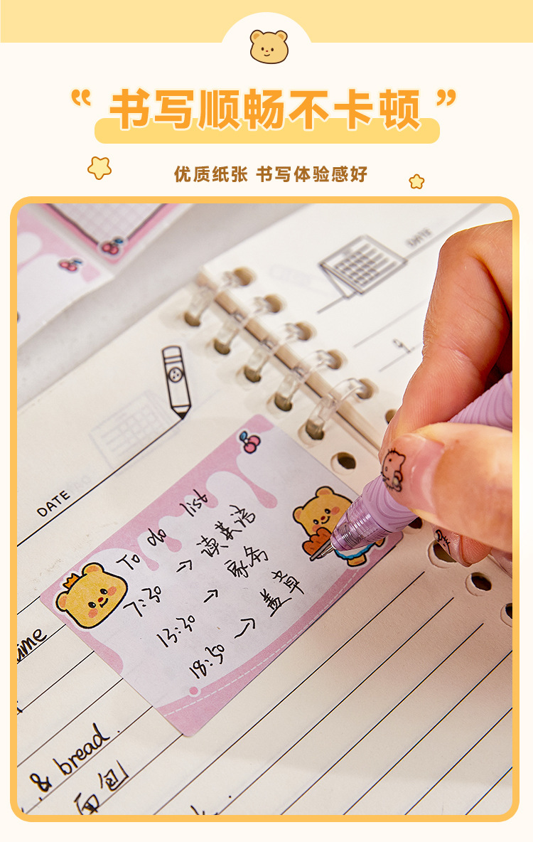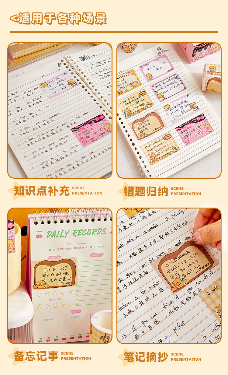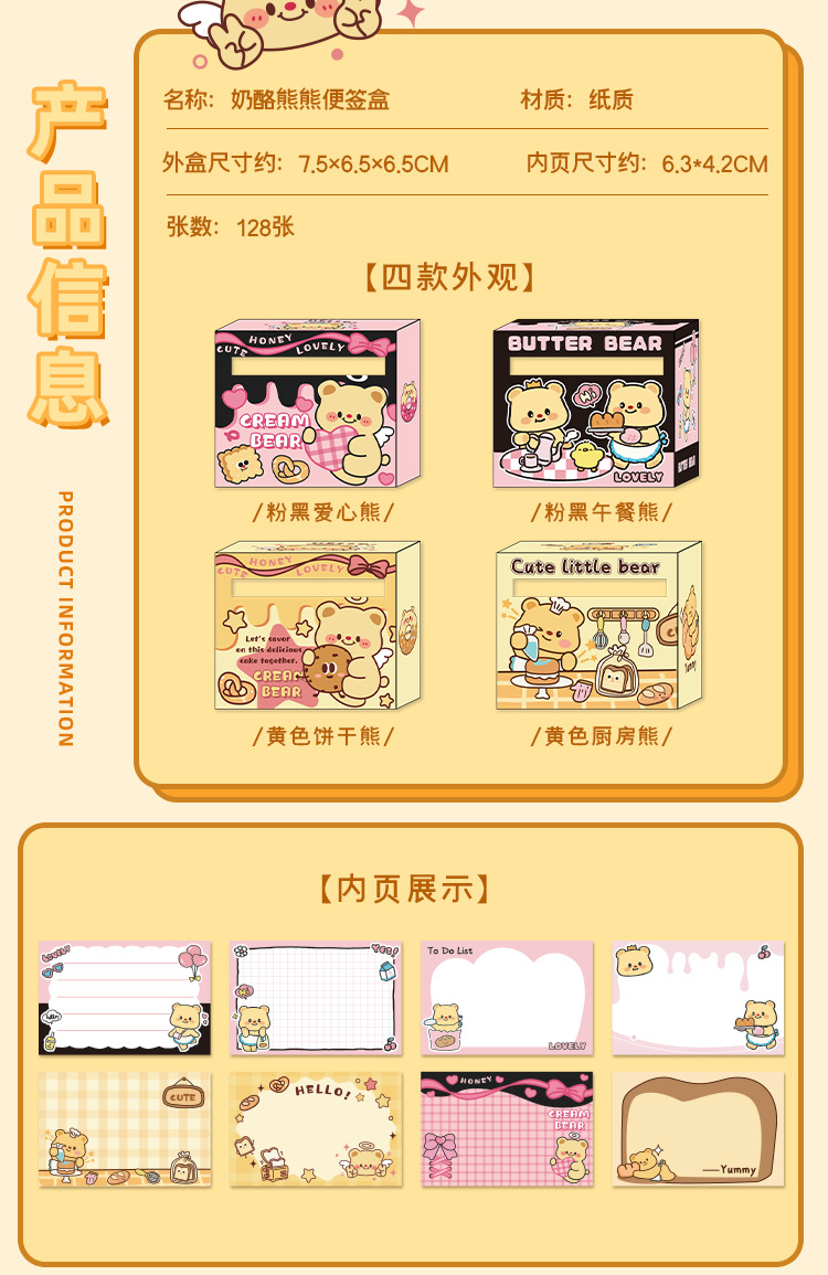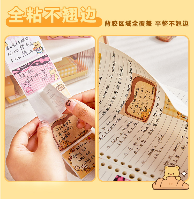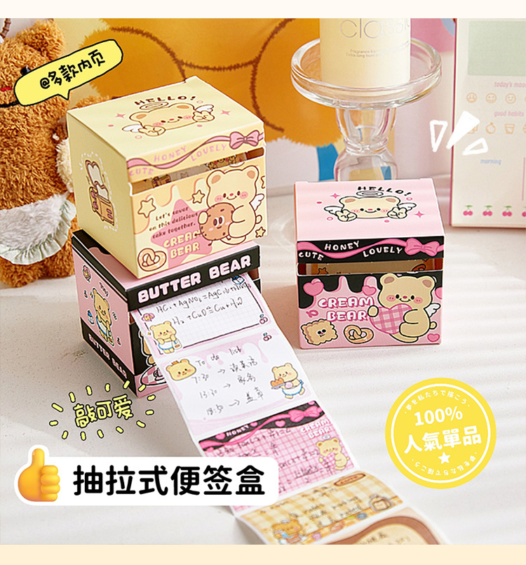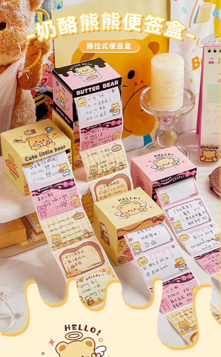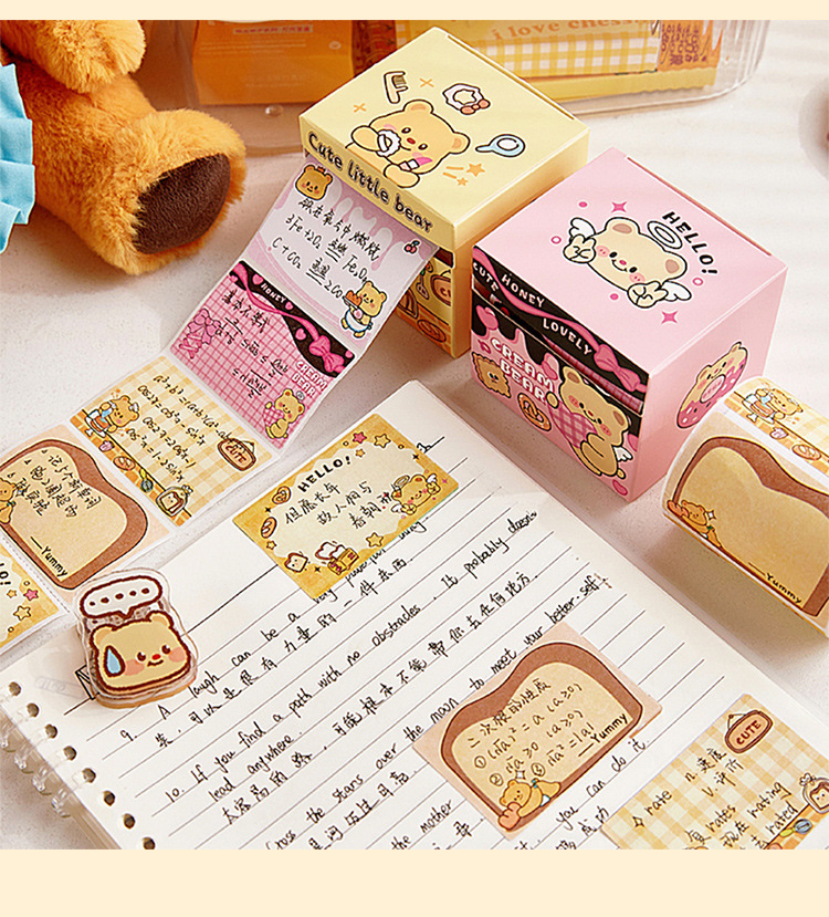 Nueva caja de notas de oso de queso, papel de notas adhesivas completamente pegajoso extraíble para estudiantes, pegatinas de notas de alto valor