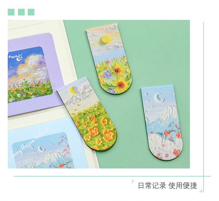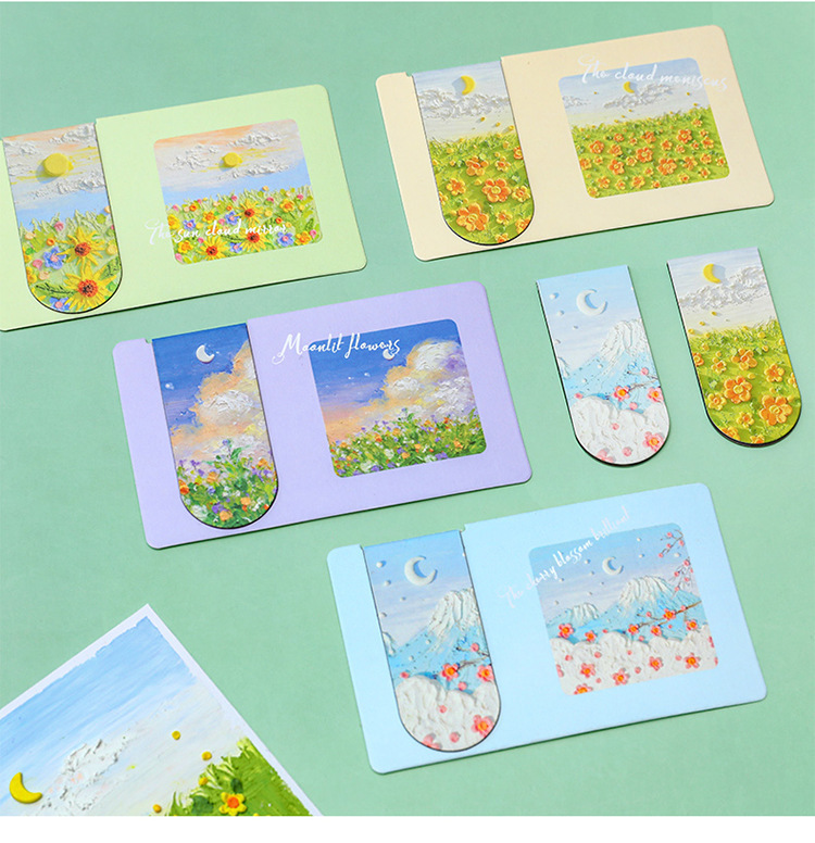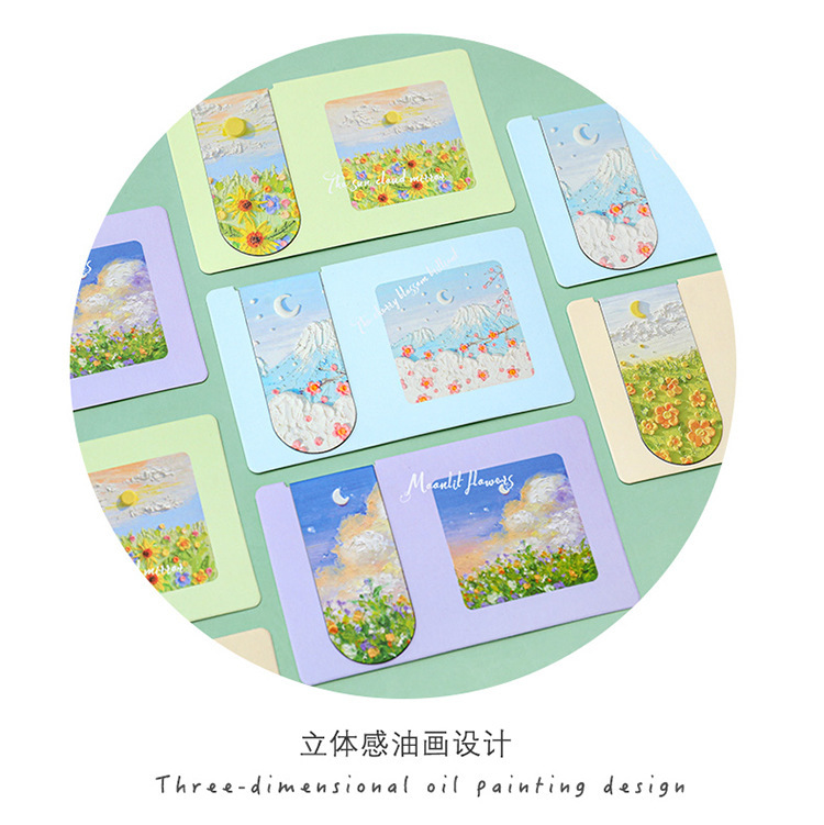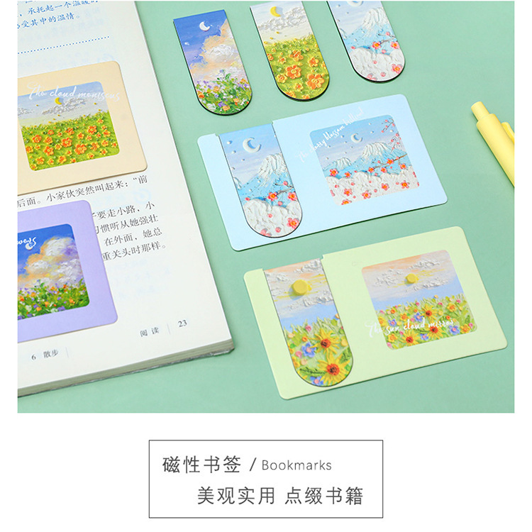Pintura al óleo marcadores magnéticos de notas de los estudiantes clasificados carpeta de papel de doble cara hermosa carpeta de lectura de aprendizaje pequeño regalo