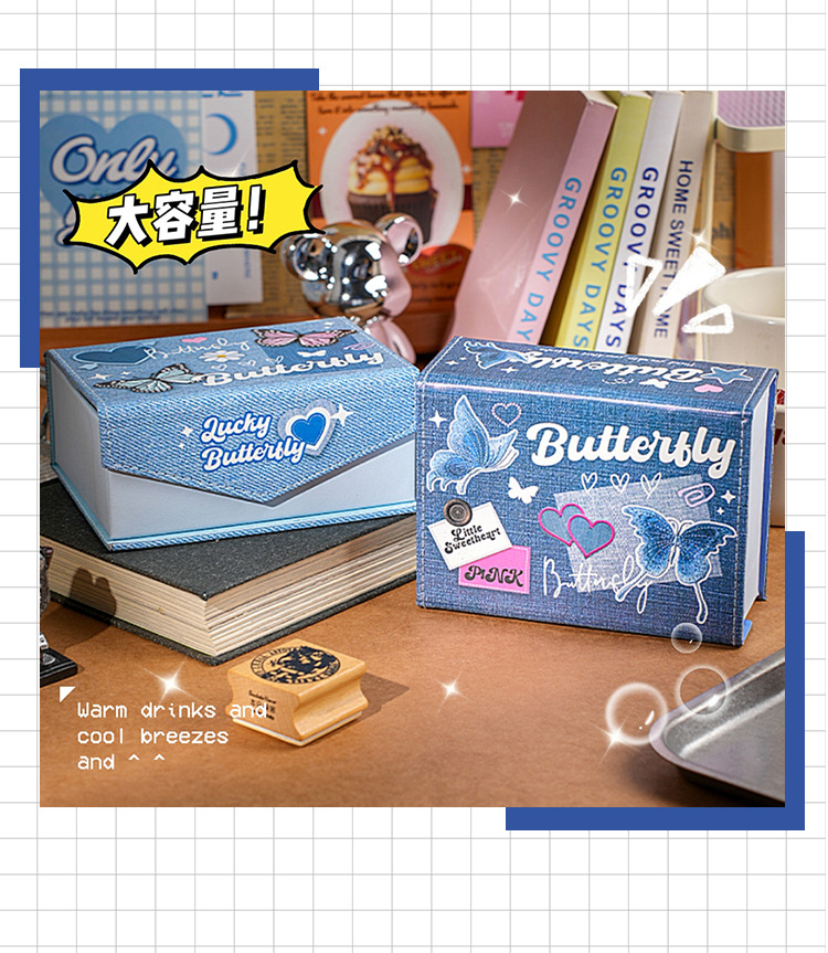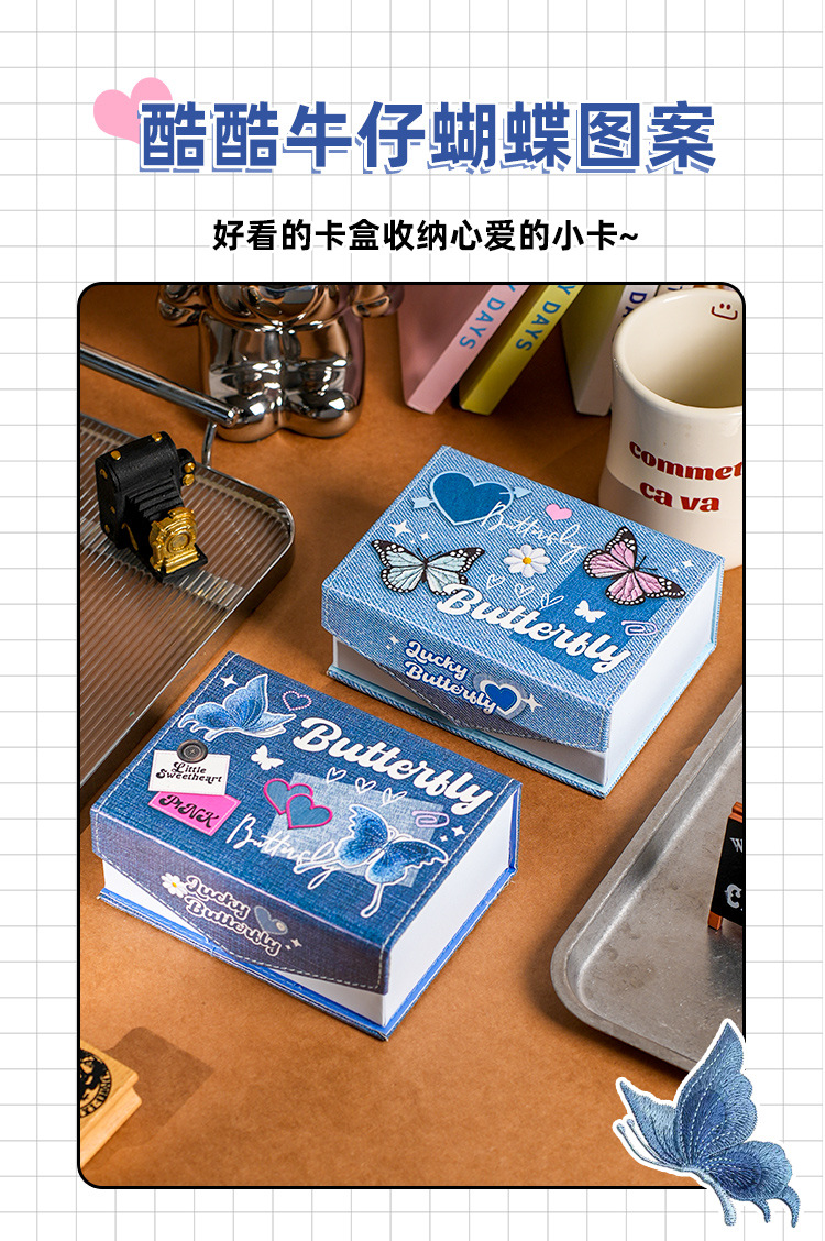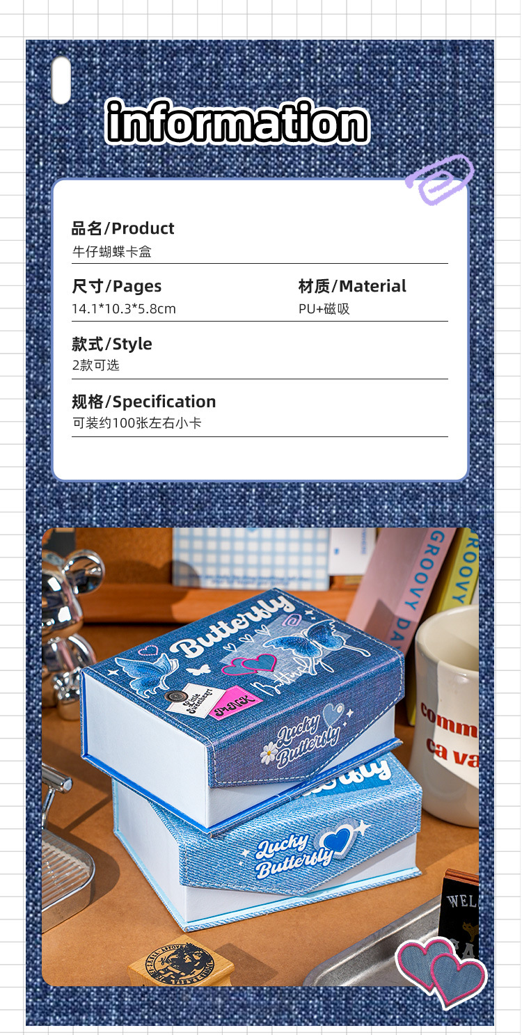 | Número de artículo | Caja de tarjetas de cuero de mariposa de mezclilla |