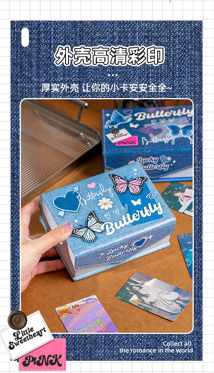 Nueva caja de tarjetas de mariposa de alto valor, caja de almacenamiento de gran capacidad para álbumes de tarjetas pequeñas de ídolos, caja multifuncional de cuero a prueba de polvo