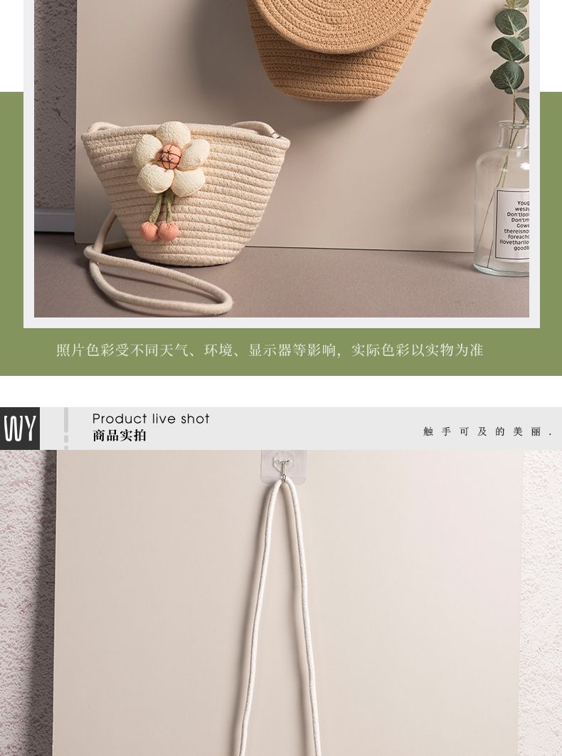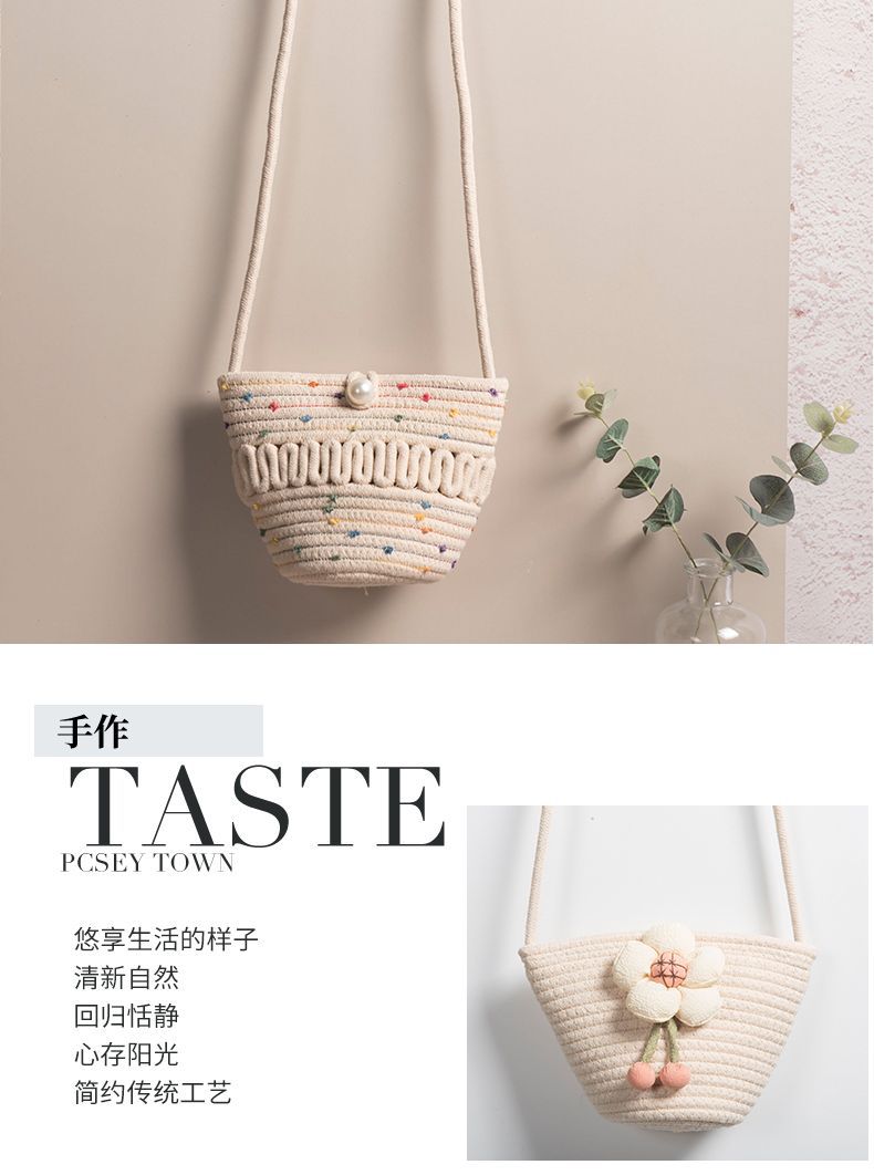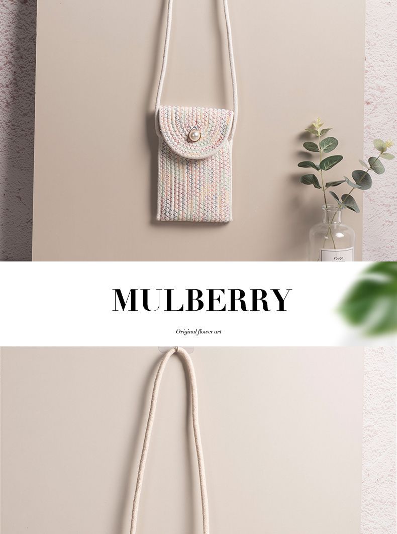 Bolsa de algodón de paja de verano, bolsa de hombro simple, bolsa de celosía de tela de tela retro creativa, bolsa para móviles, bolsa pequeña para mujeres