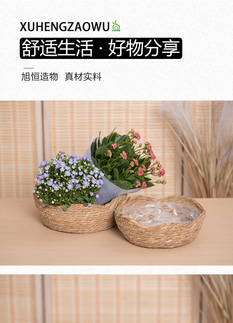 Tejido a mano jardín de viento maceta de plantas tejidas de hierba flores verdes cestas de almacenamiento fotografía creativa posada para la cámara props