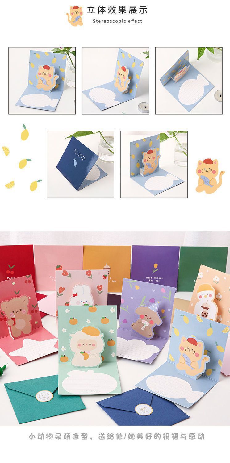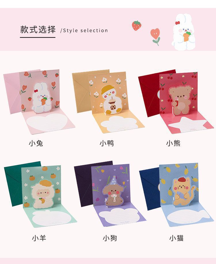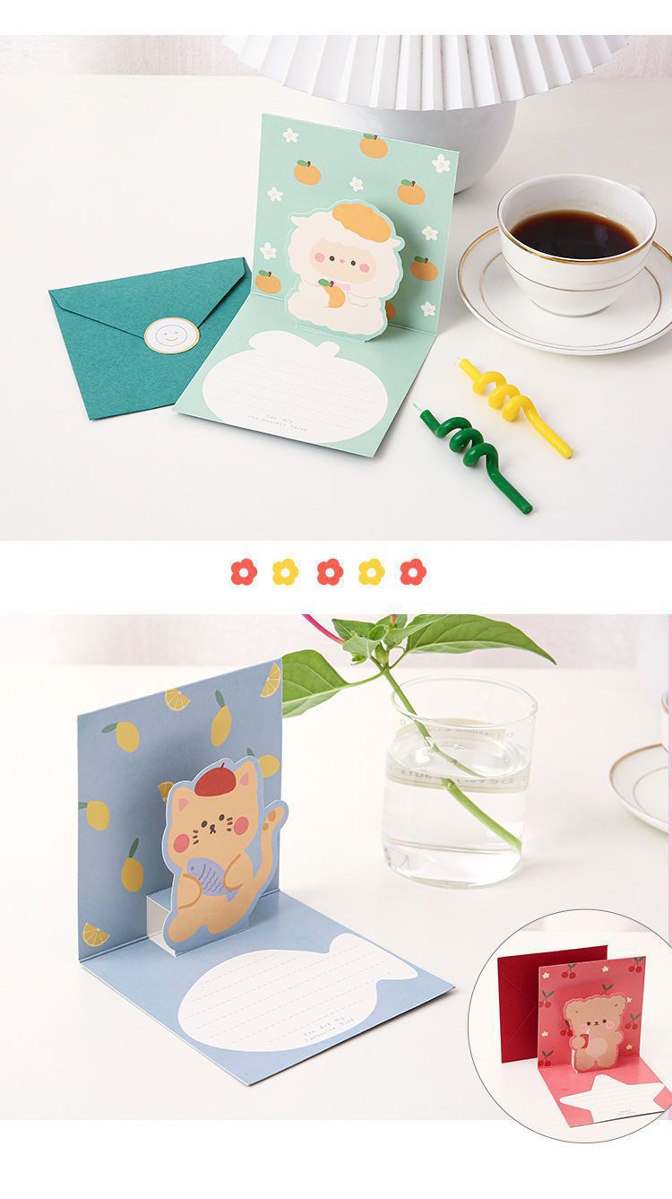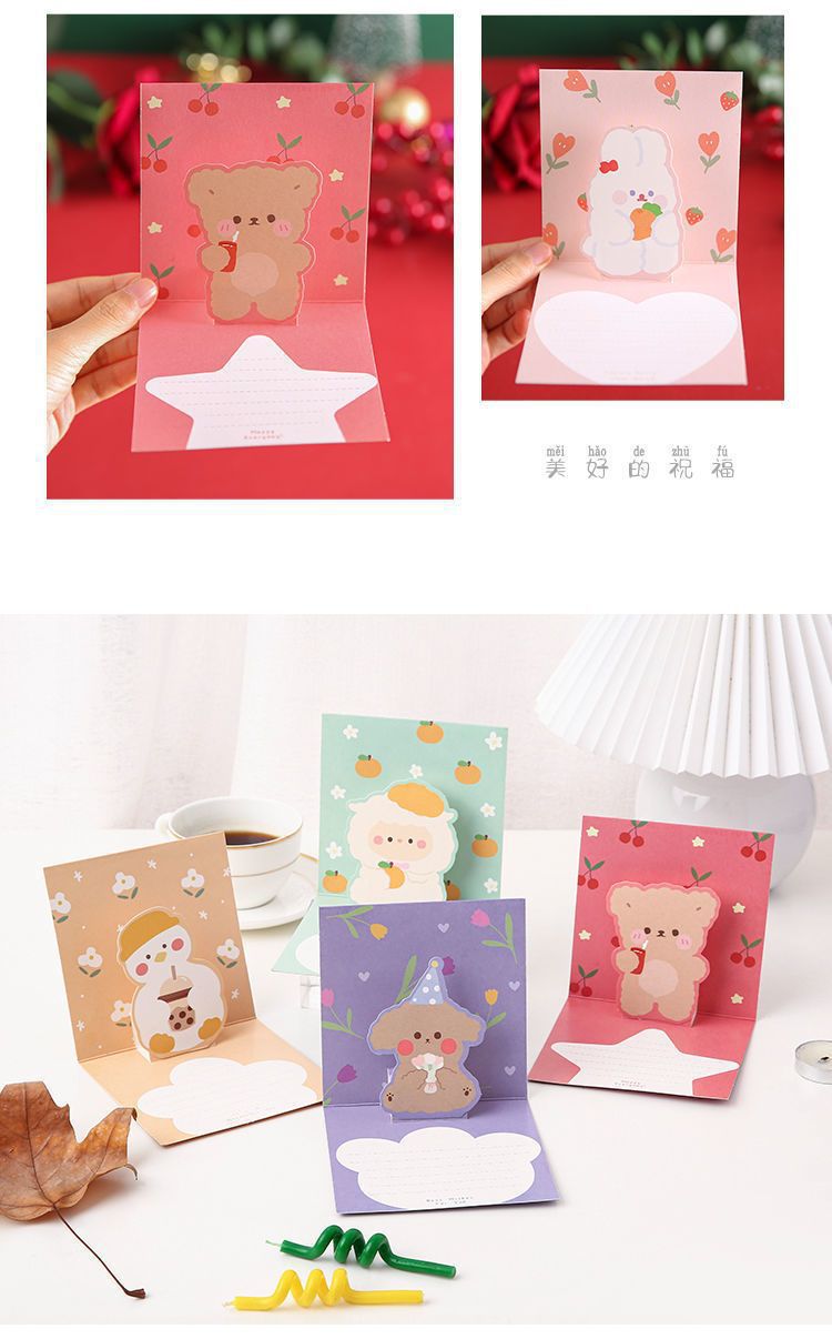 3D tarjeta de felicitación 3D plegable de dibujos animados lindo tarjeta de felicitación de cumpleaños tarjeta de felicitación para amigos ins regalo creativo