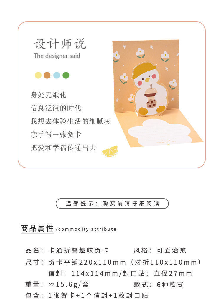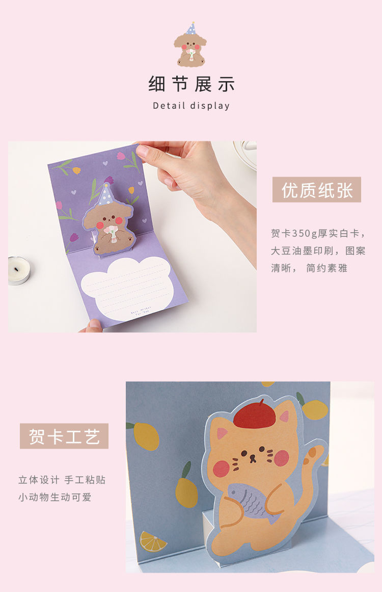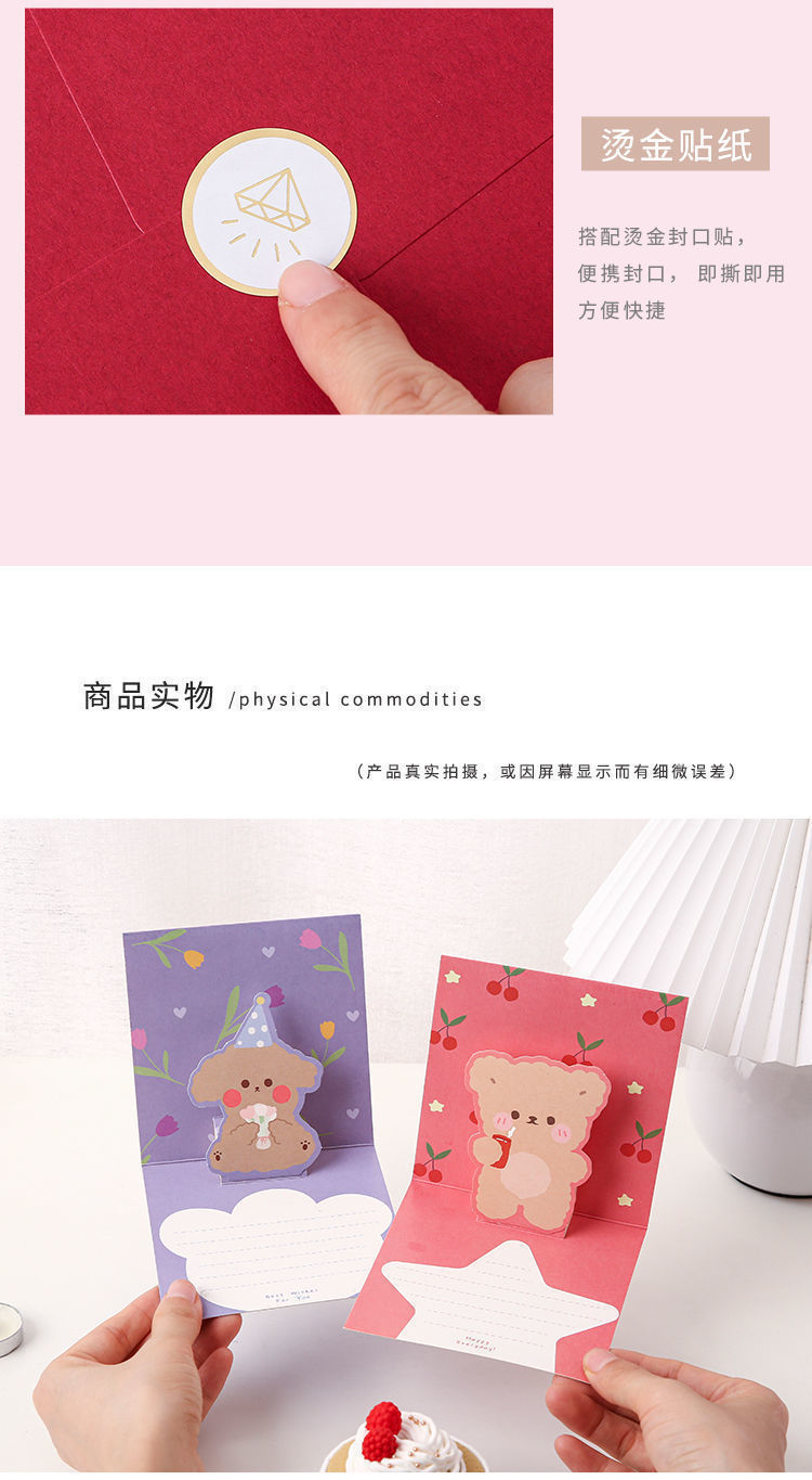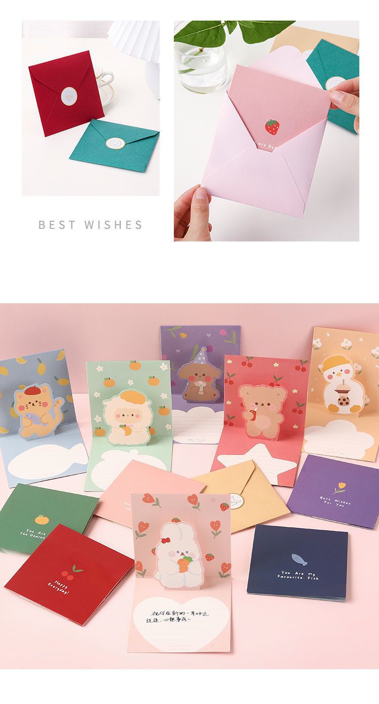 3D tarjeta de felicitación 3D plegable de dibujos animados lindo tarjeta de felicitación de cumpleaños tarjeta de felicitación para amigos ins regalo creativo