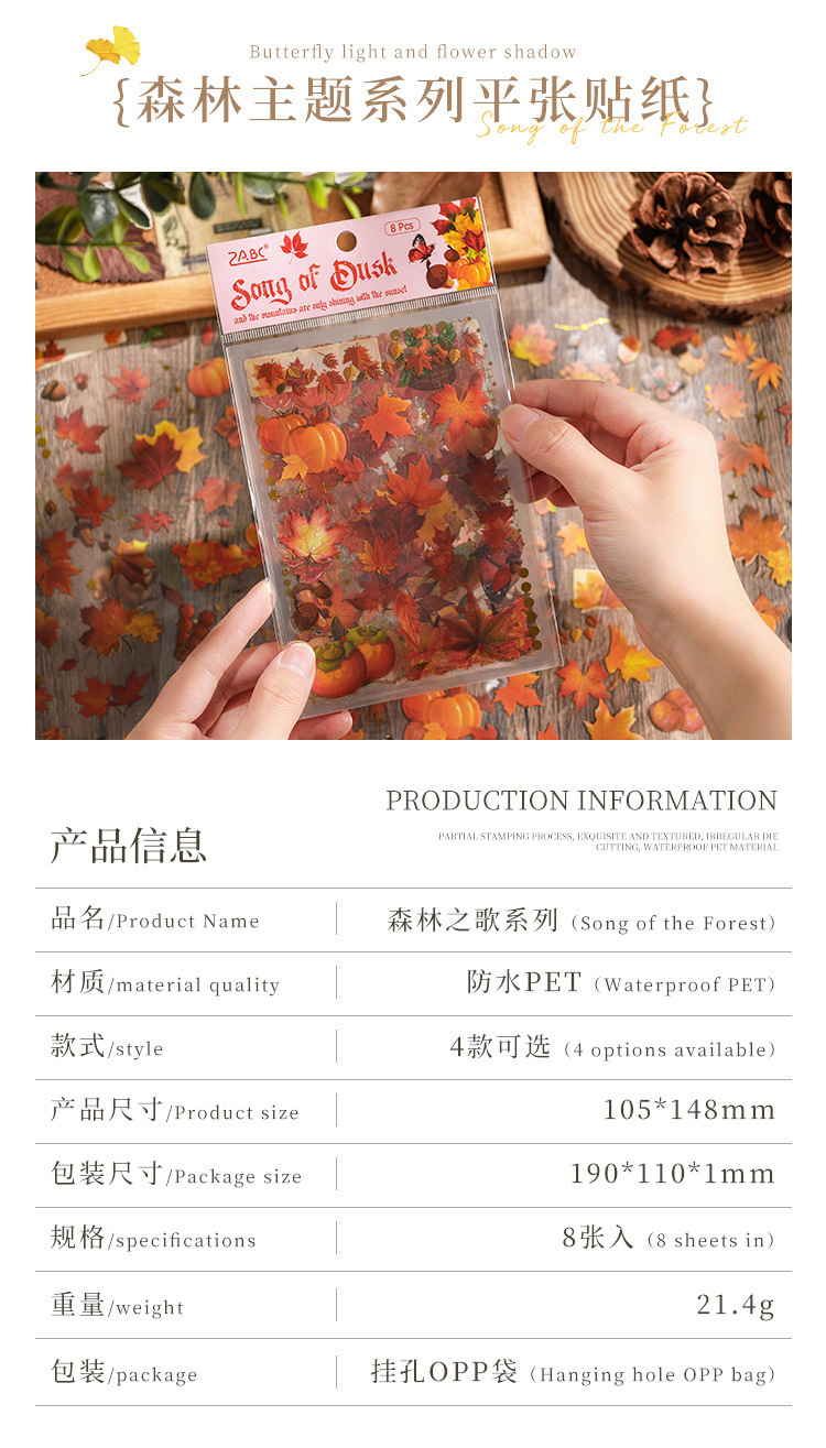 Canción del bosque Bolsa de pegatinas de bolsillo a prueba de agua Planta retro literaria Flor de hoja de arce Cuenta de mano DIY Pegatina de material