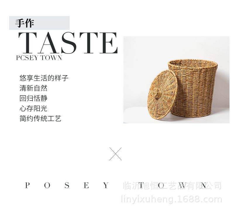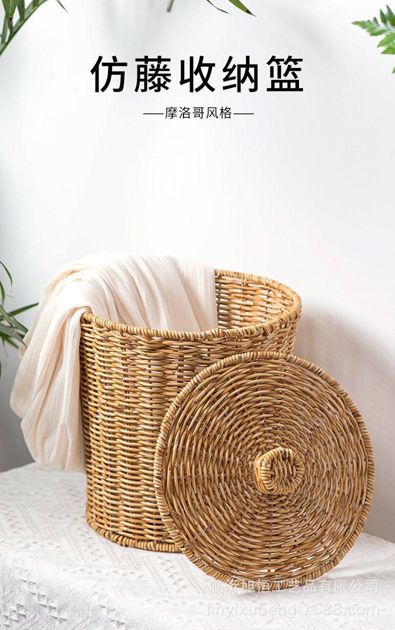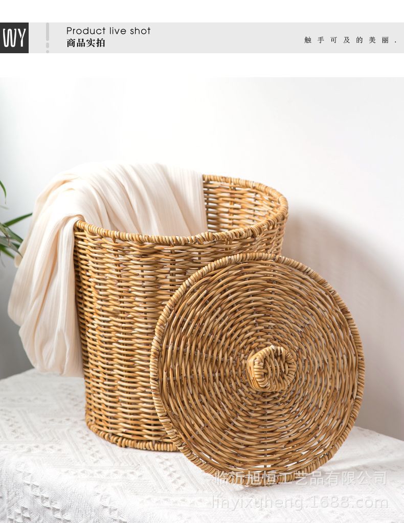 imitación de caña tejida a mano cubo de almacenamiento de escritorio retro canasta de almacenamiento de sala de estar de oficina canasta de almacenamiento con cubierta de almacenamiento