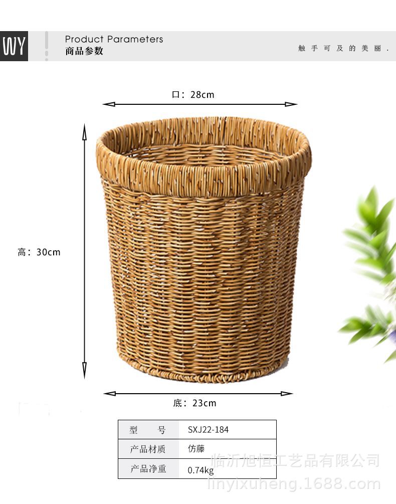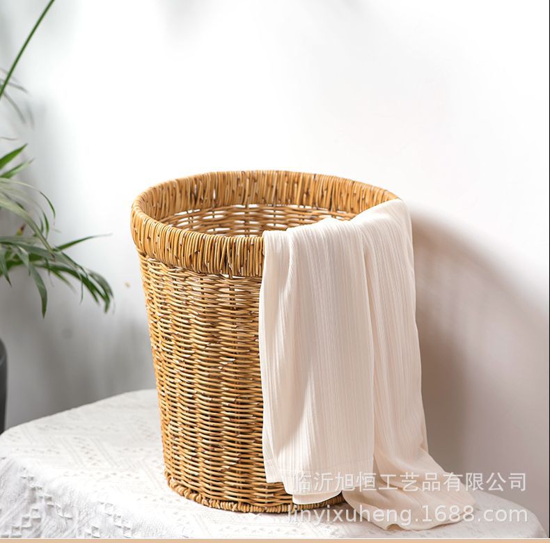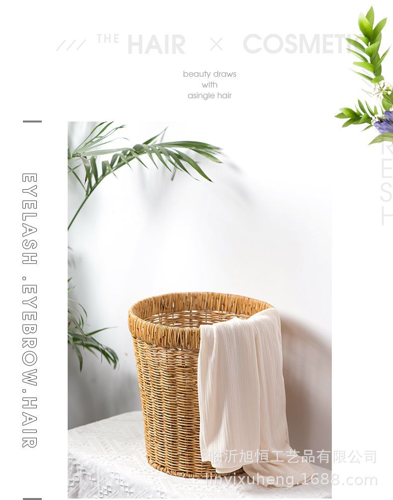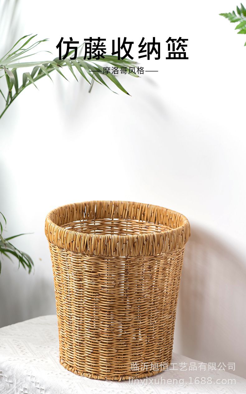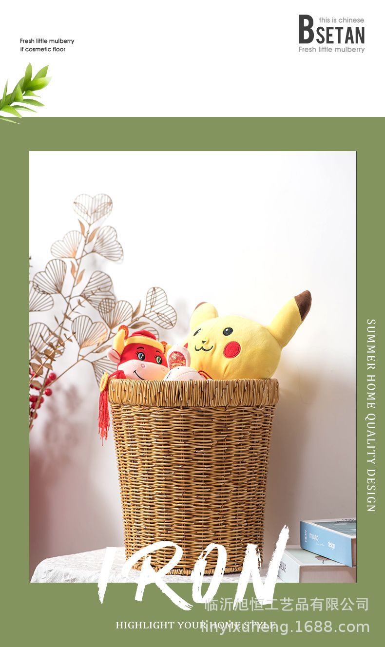 Cesta de almacenamiento de caña de estilo nórdico, armario de escritorio, sala de estar, dormitorio, oficina redonda