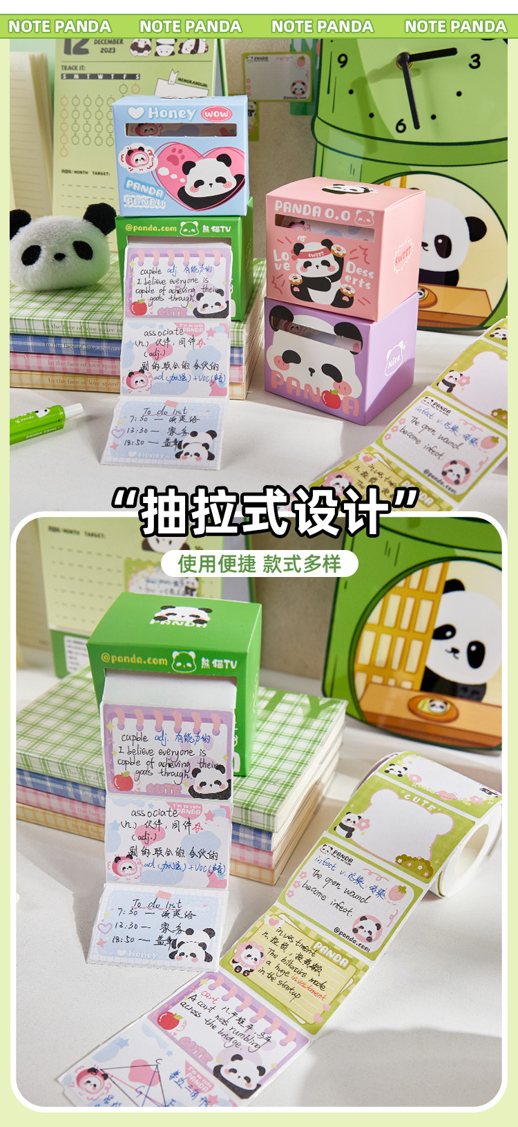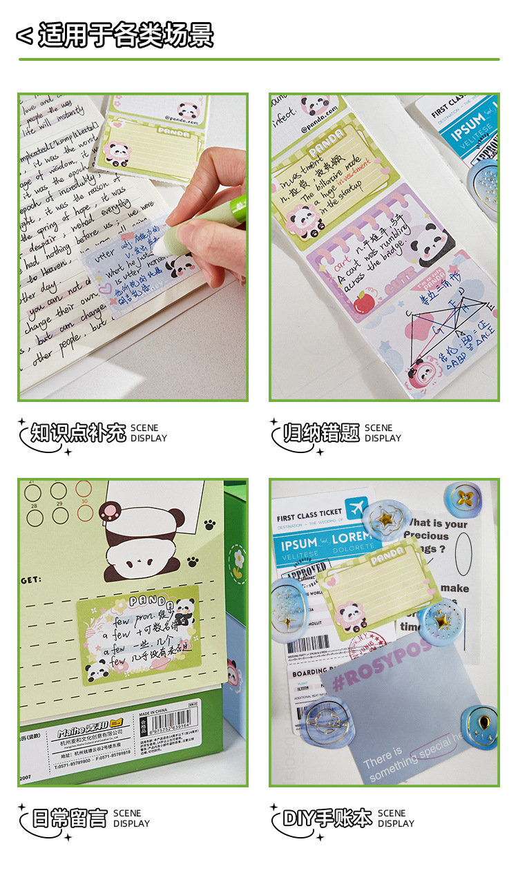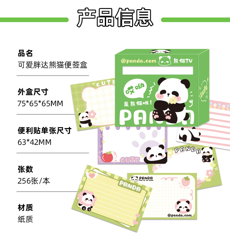 Lindo Panda gordo caja de notas desgarrable nota pegatina cuaderno de alto aspecto estudiante Nota de papel