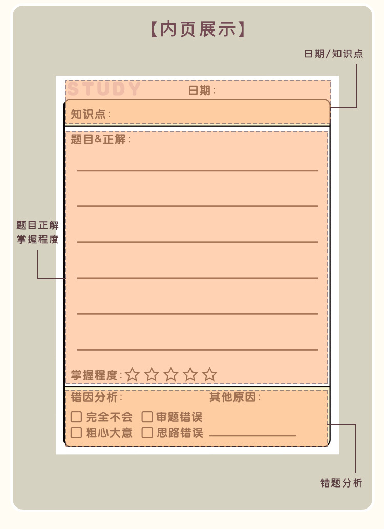 | Número de artículo | Caja de notas de la colección de preguntas equivocadas de la línea horizontal |