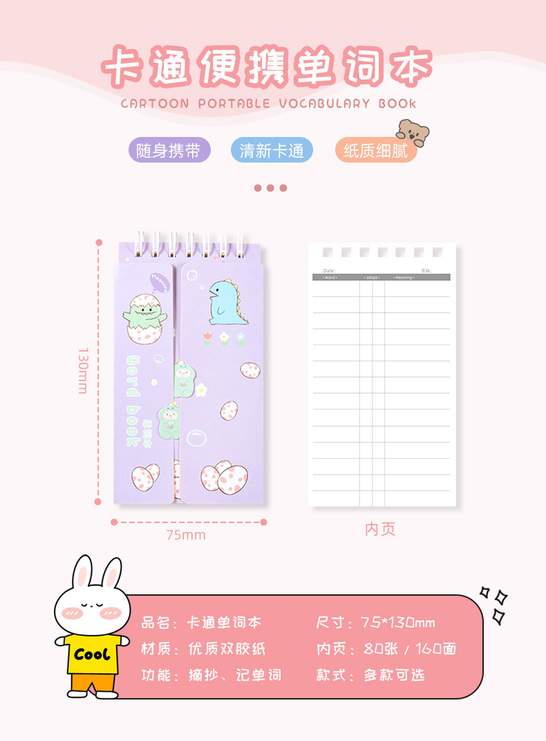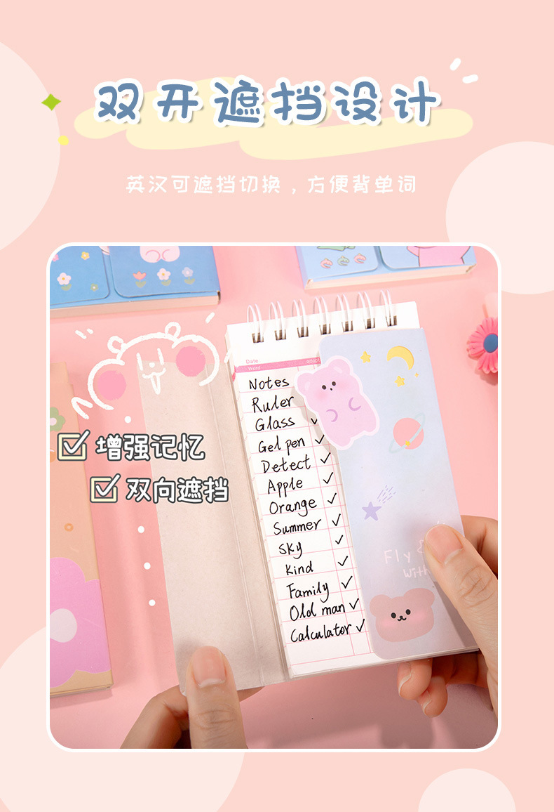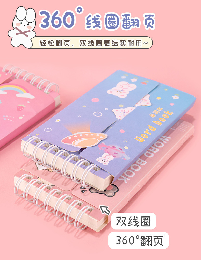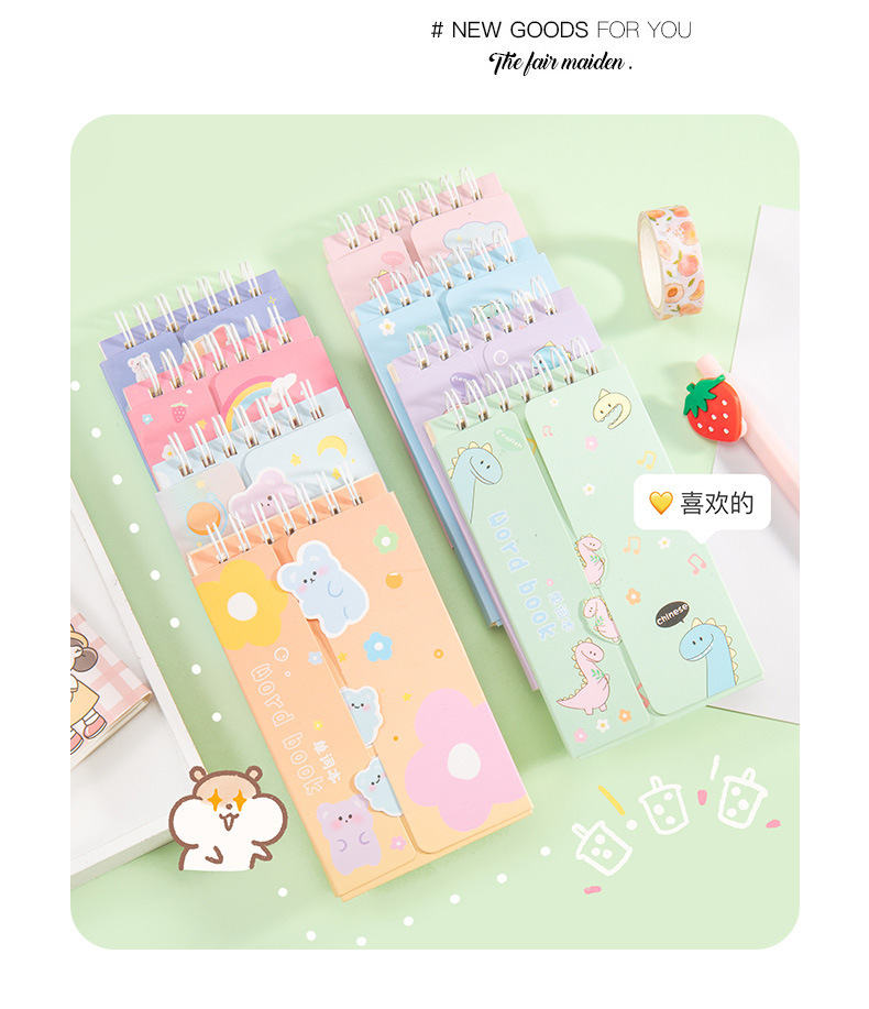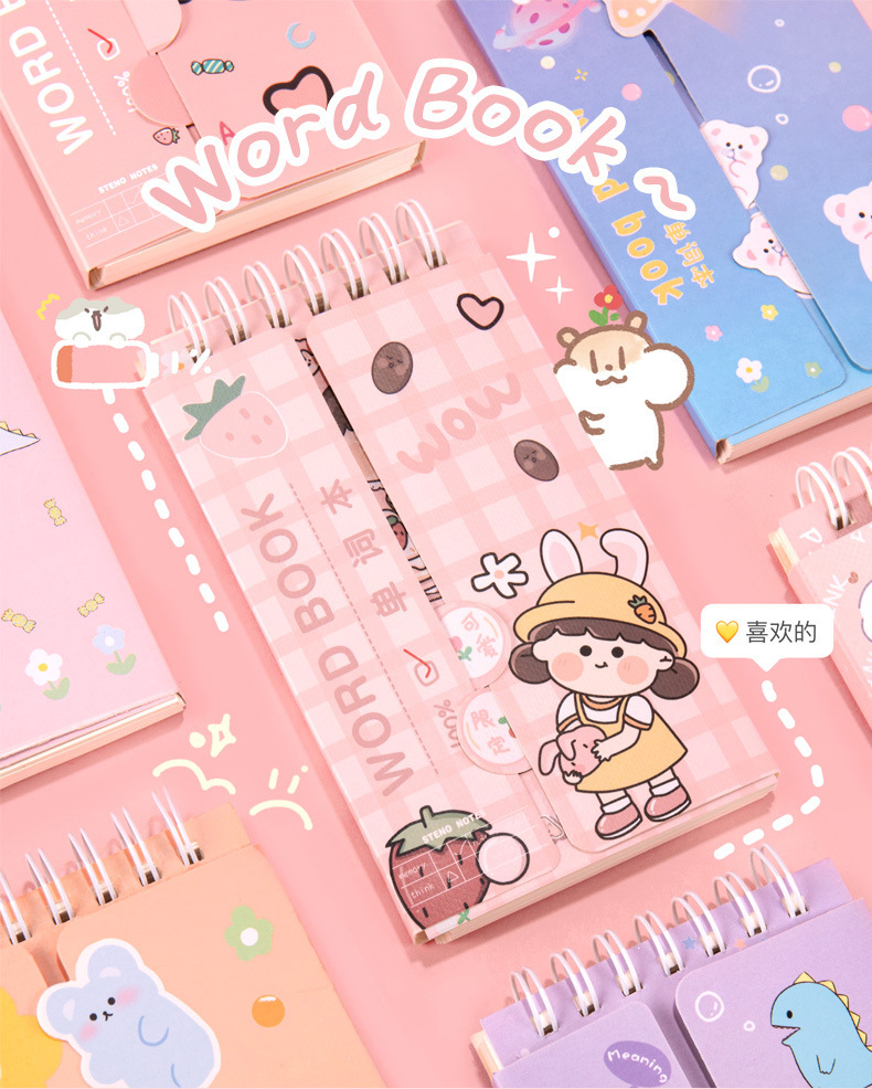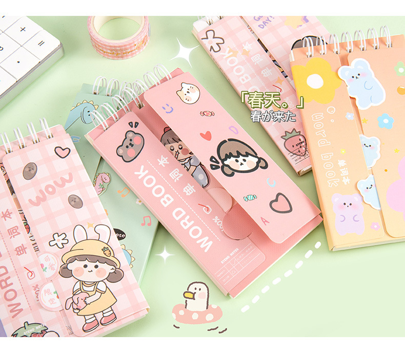 Dibujos animados Inglés acumulación de vocabulario portátil ins estilo curva de memoria puede bloquear el cuaderno