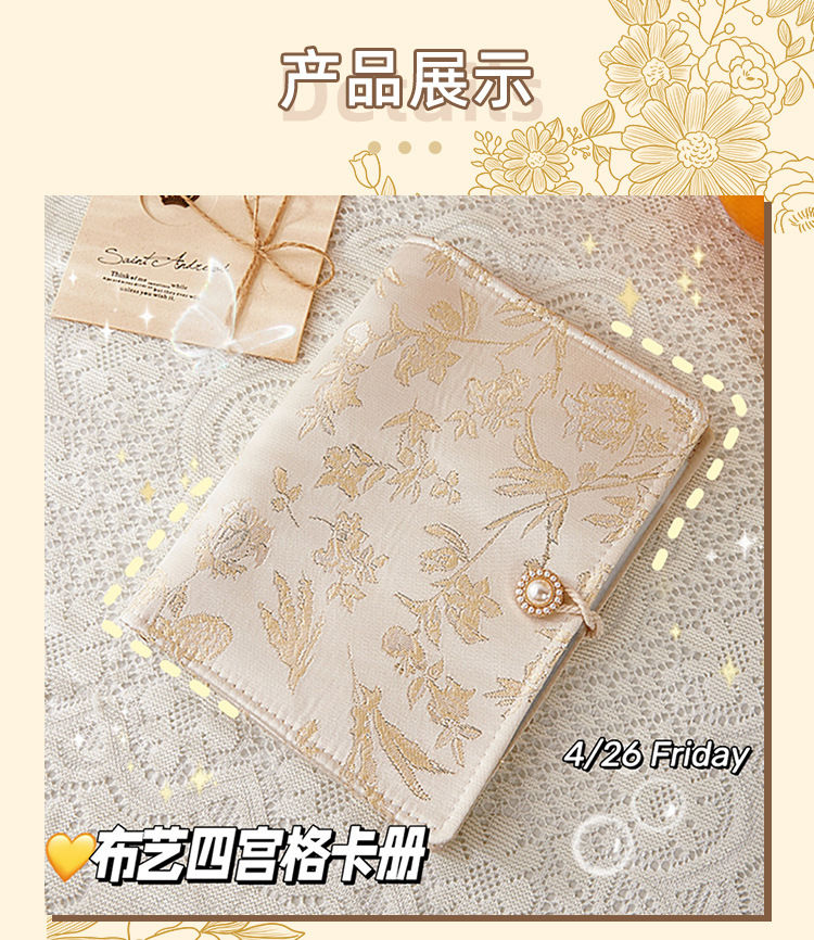 Nuevo libro de tarjetas de tela china de alto valor satén bordado álbum de fotos de 3 pulgadas de tarjetas de amado