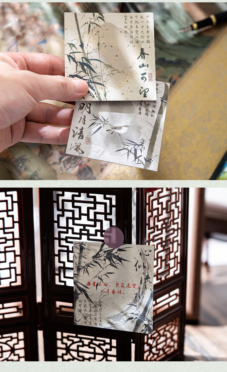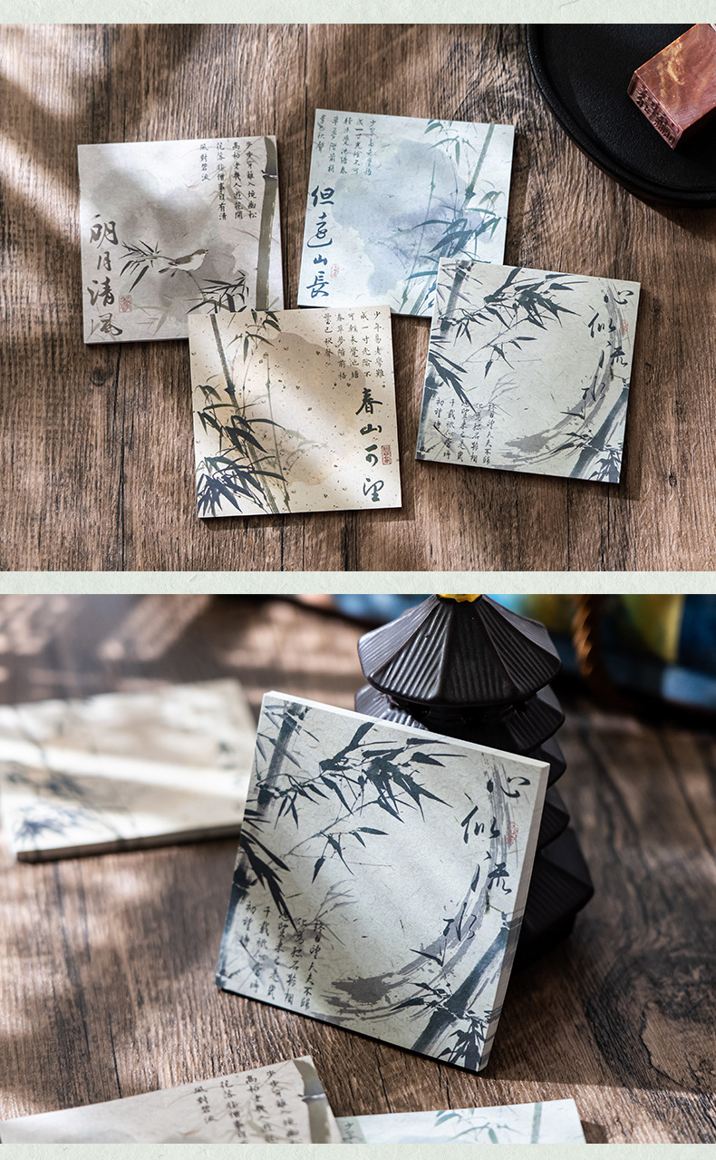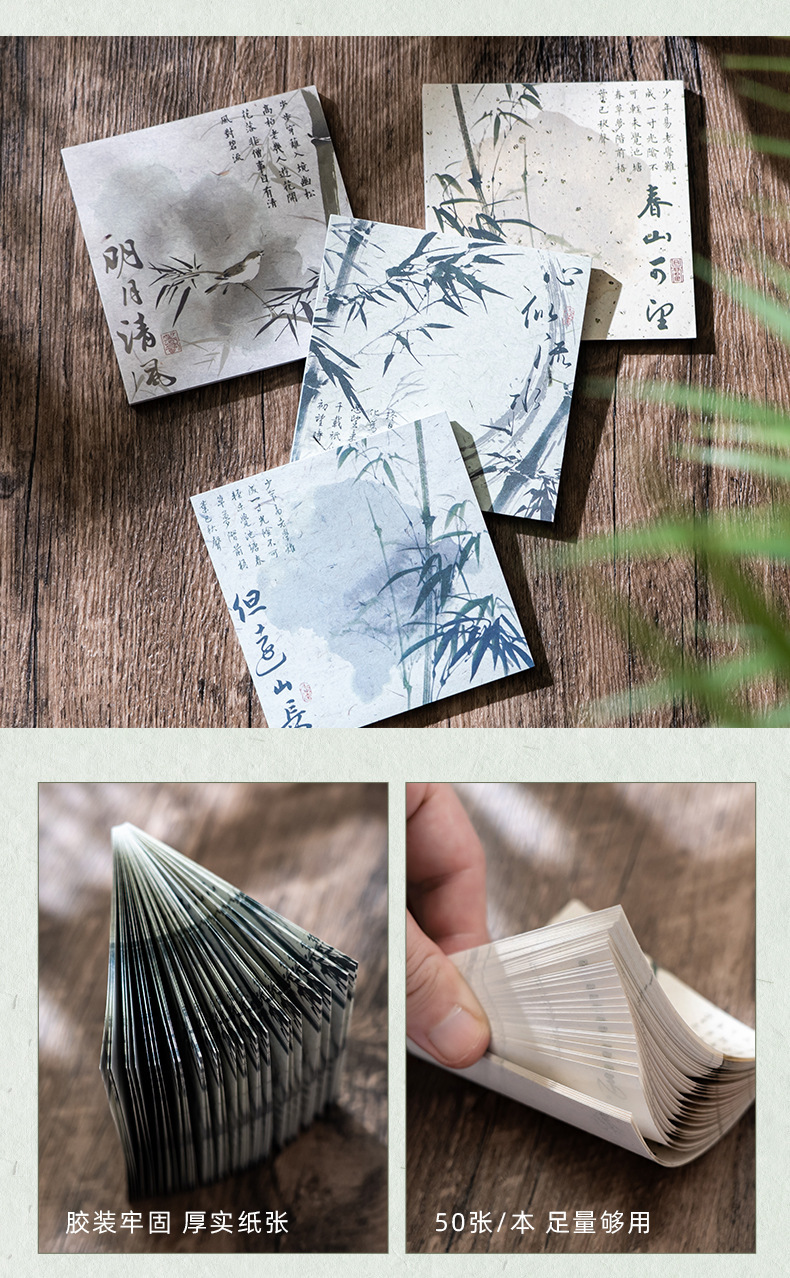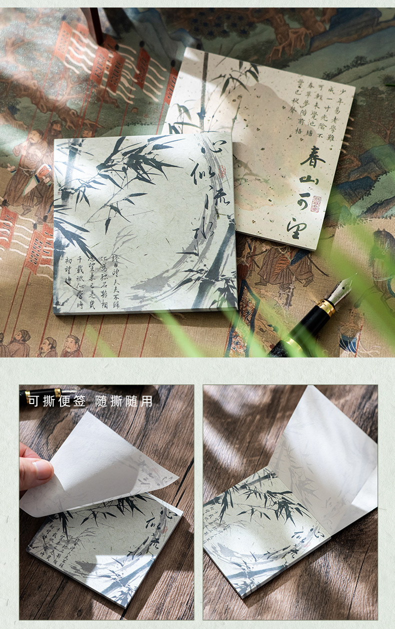 Guofeng bambú cuaderno de notas estilo antiguo alto valor facial rasgable caligrafía poesía no adhesiva papel de etiqueta material de contabilidad