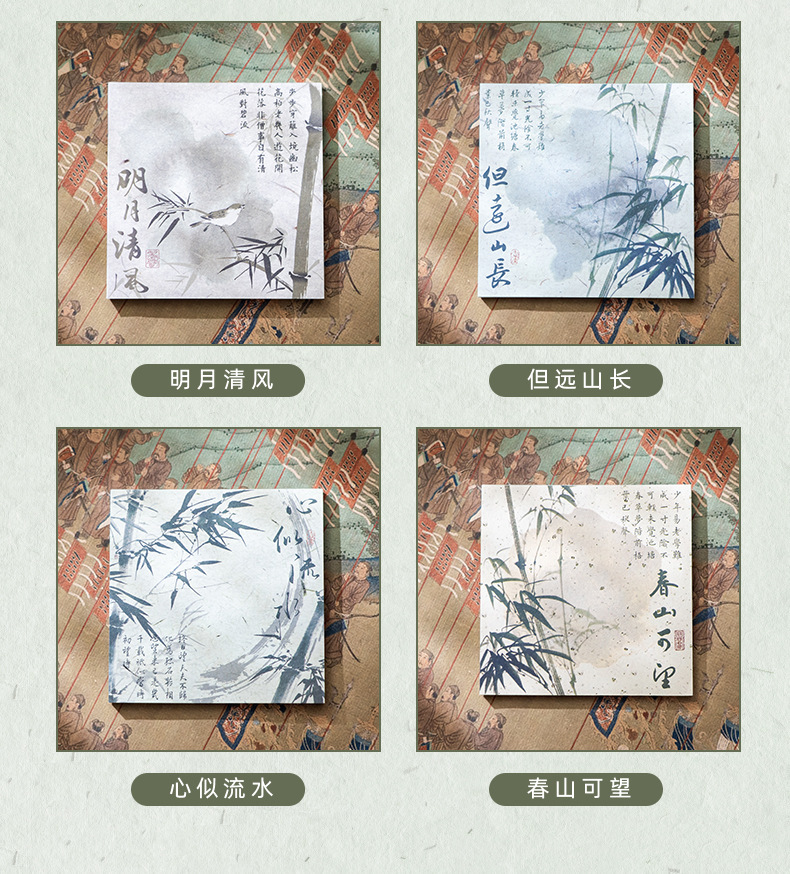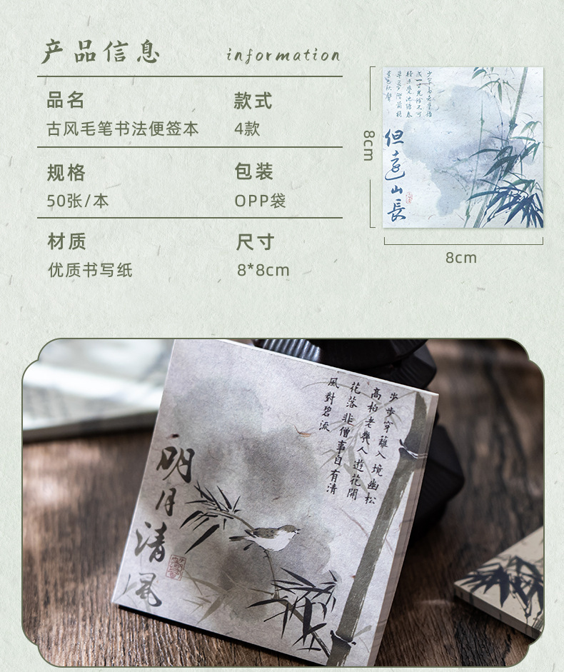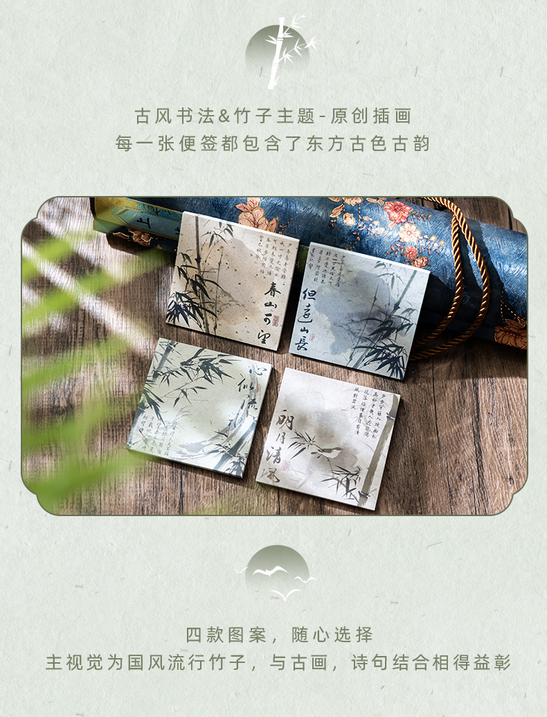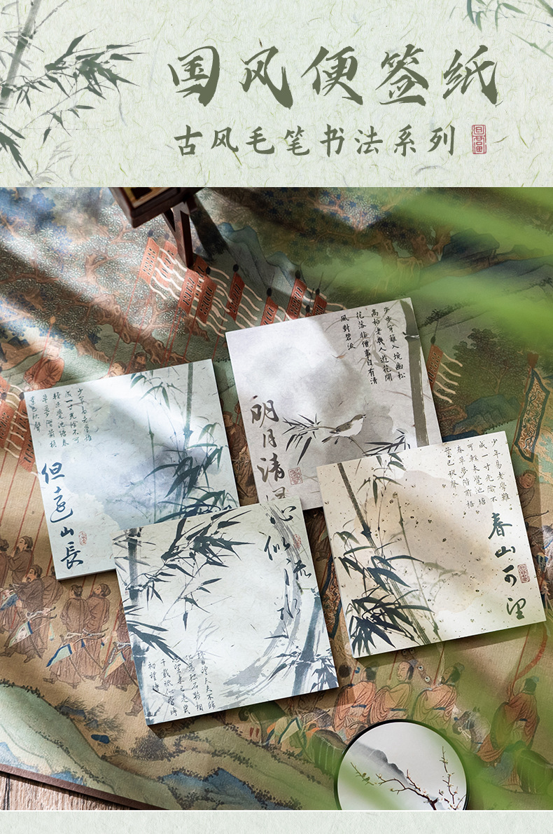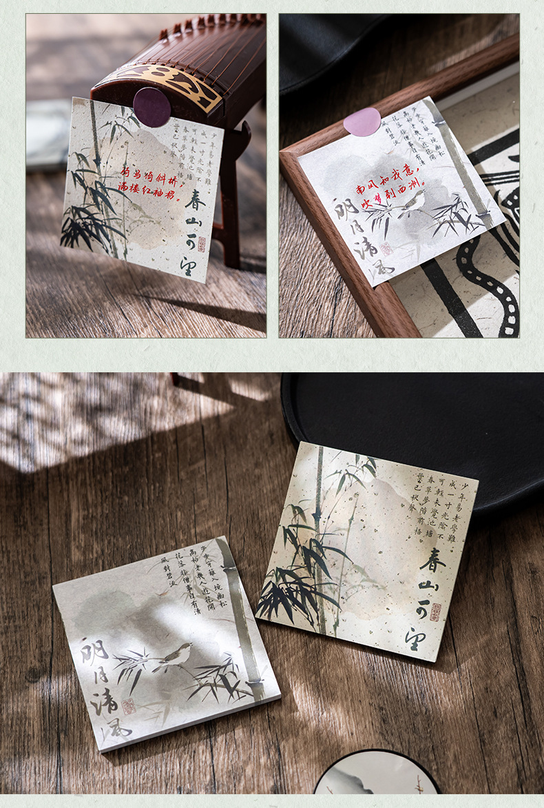 Guofeng bambú cuaderno de notas estilo antiguo alto valor facial rasgable caligrafía poesía no adhesiva papel de etiqueta material de contabilidad