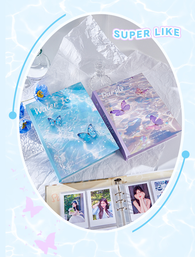 Ins Feng Shui Tarjeta de mariposa de gran capacidad de álbum de fotos de chicas de alto valor de 3 pulgadas de almacenamiento de tarjetas de estrella