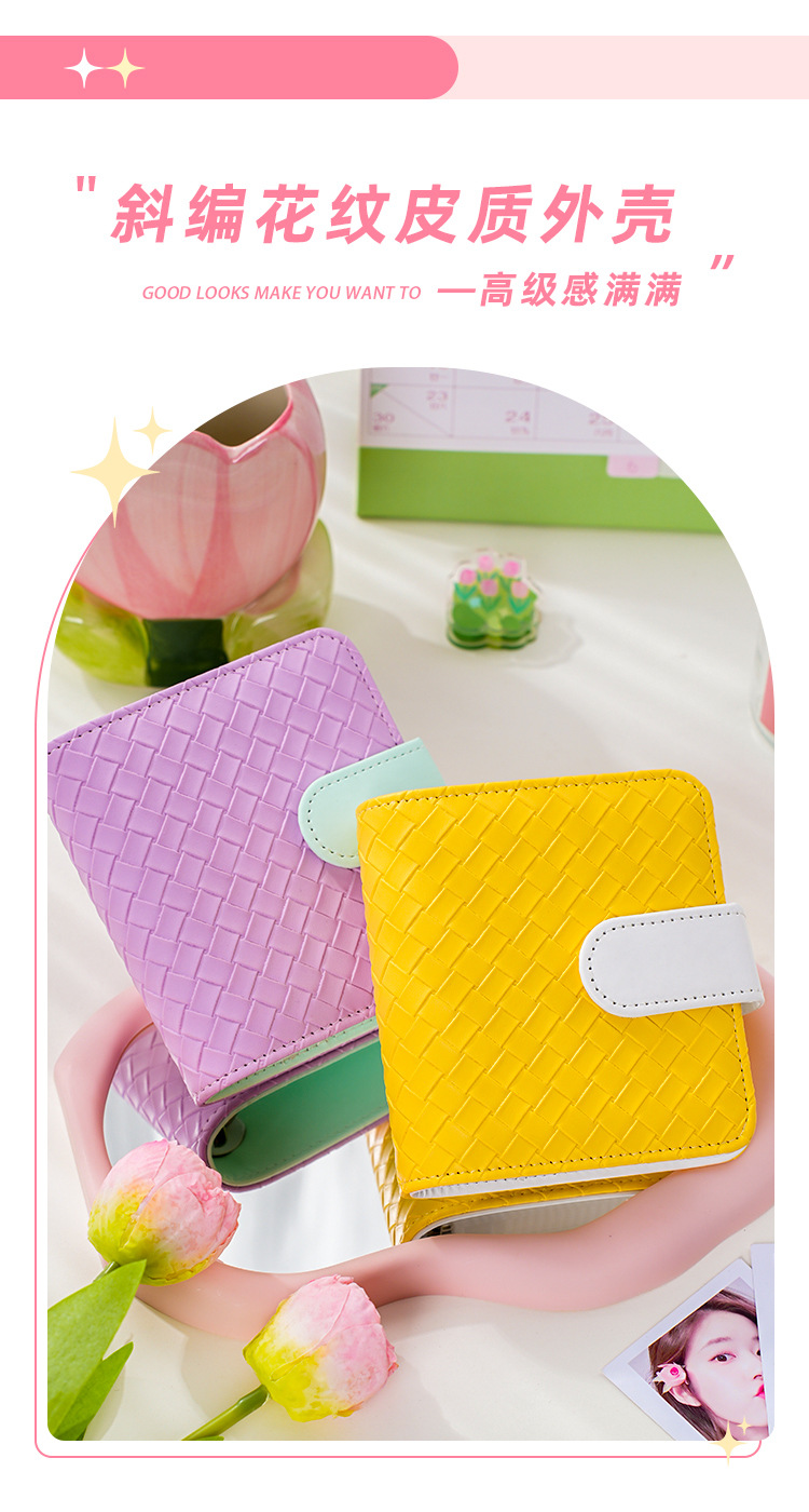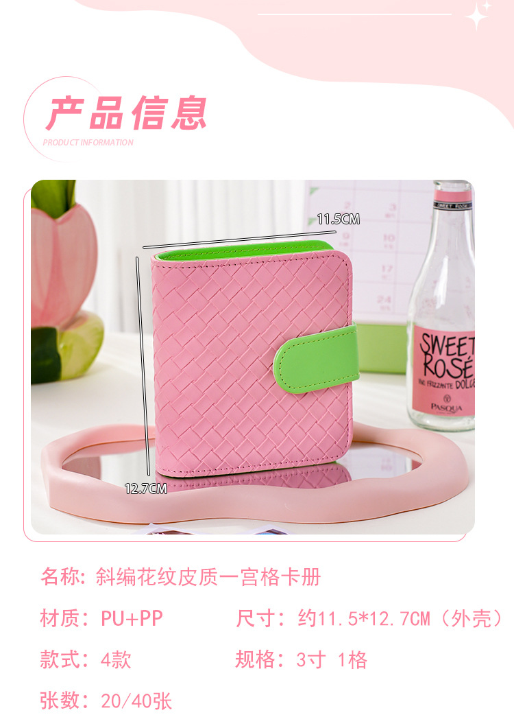 Libro de tarjetas de patrón de tejido oblicuo Libro de almacenamiento de tarjetas pequeñas de un palacio de 3 pulgadas Álbum de fotos familiar Polaroid de hojas sueltas de alto valor