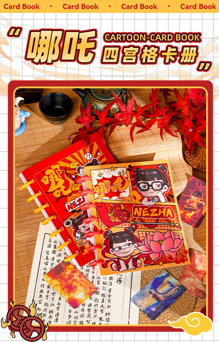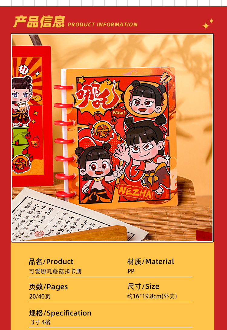 Nezha Magic Child, nuevo libro de tarjetas de hongos marinos, libro de almacenamiento de gran capacidad de cuatro cuadros de la familia, álbum de fotos de tarjetas pequeñas.