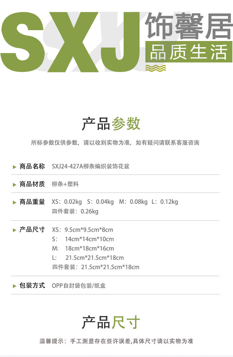 Sauce trenzado maceta de flores secas flores frescas canasta de flores decoración adornos hogares pastílicos sala de estar grasa verde carnosa maceta cubierta