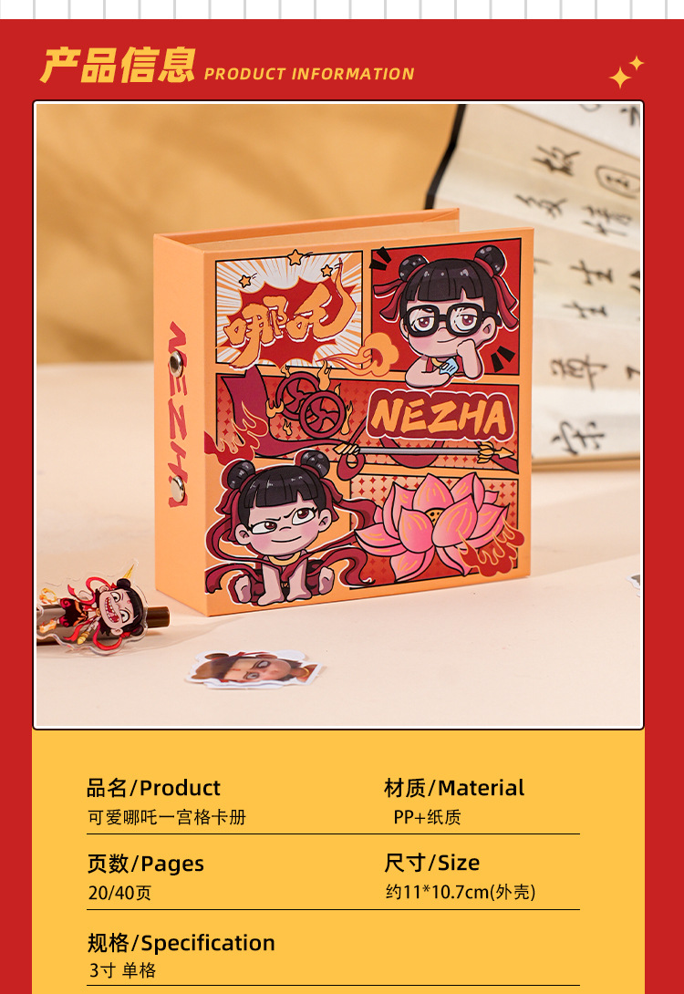 Cute Nezha Yigongge Card Book Mini portátil de alto valor Libro de almacenamiento de tarjetas pequeñas Star Idol Polaroid Álbum