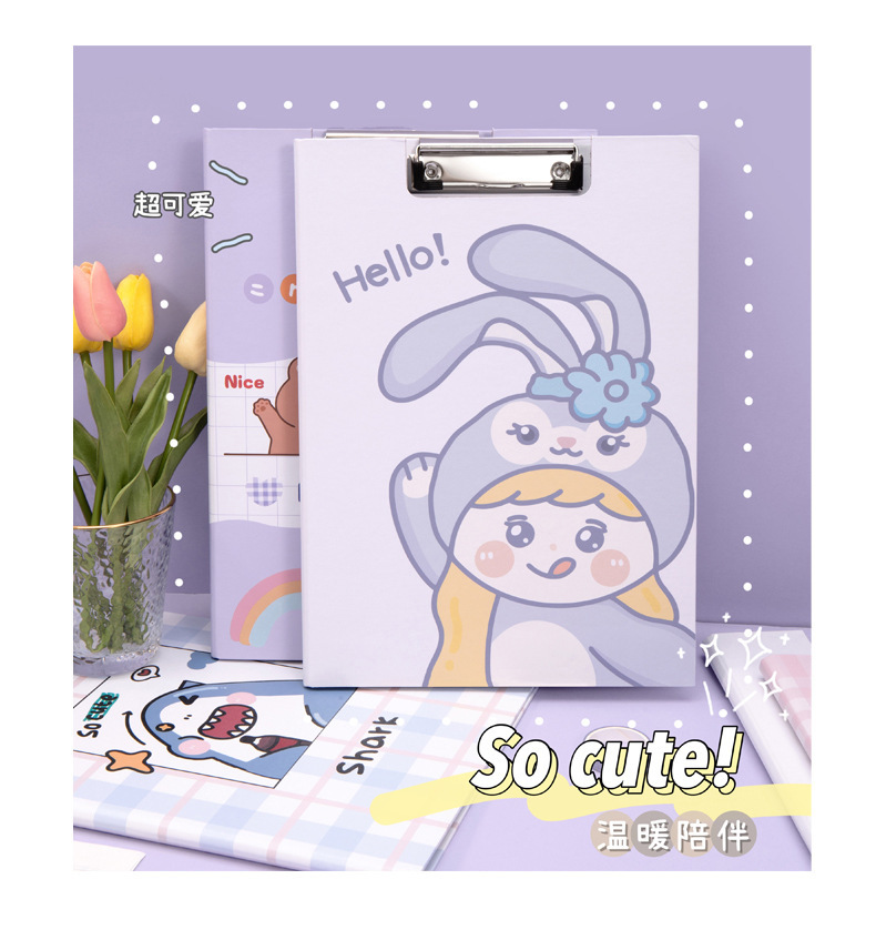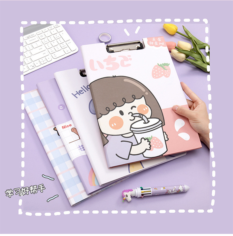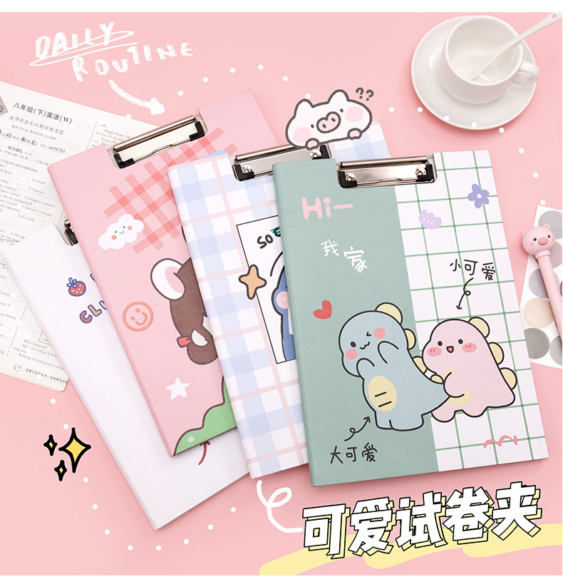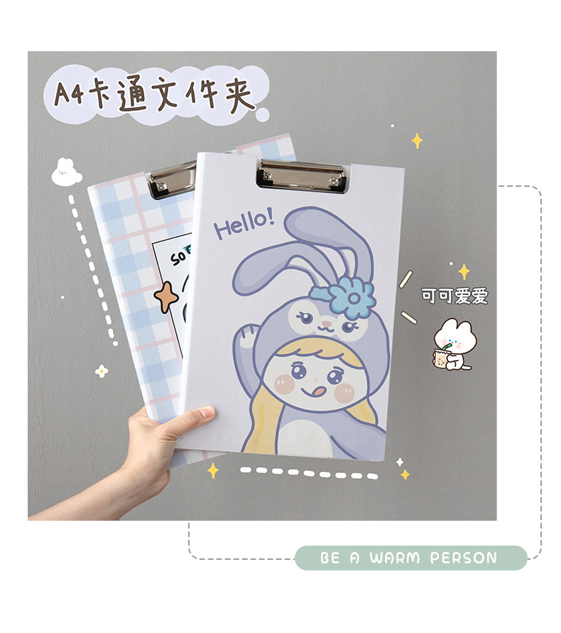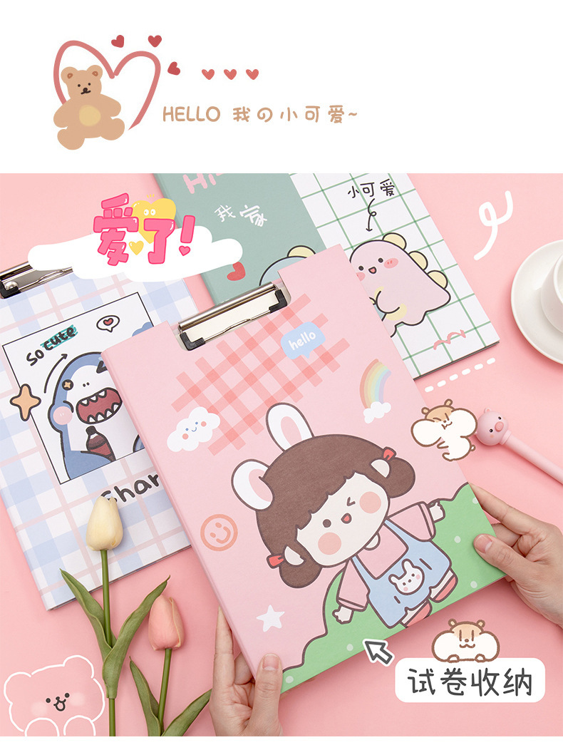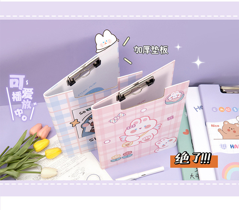 Clip de almacenamiento de papel de escritura de estudiante de escuela primaria de dibujos animados de alta apariencia Linda carpeta A4 clip de tablero fijo