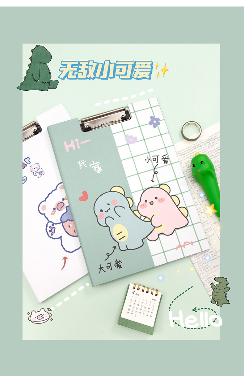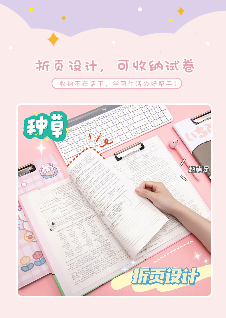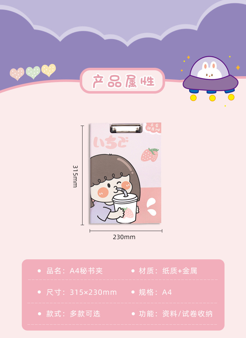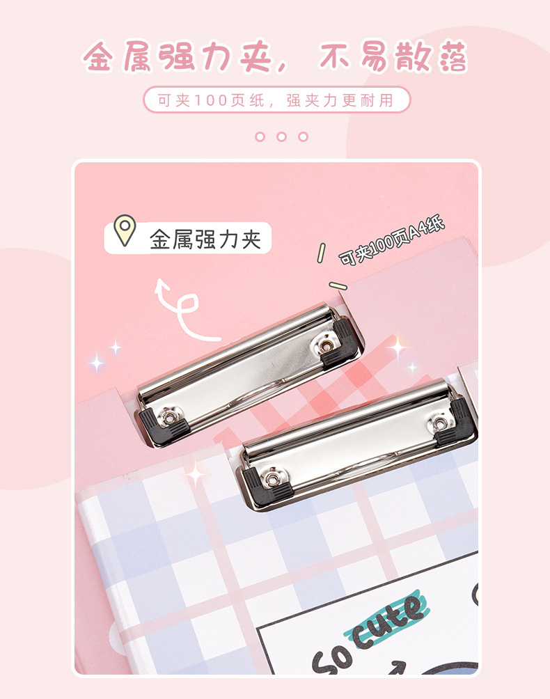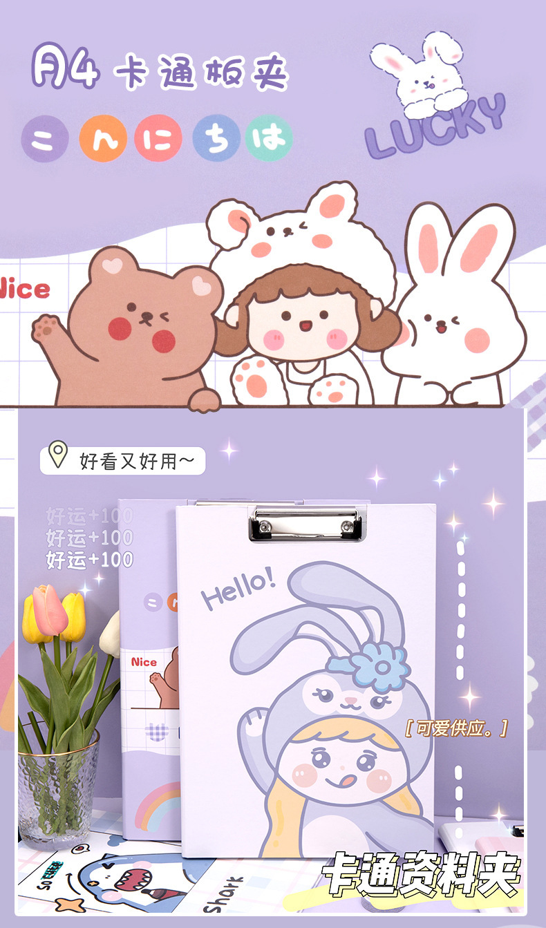 Clip de almacenamiento de papel de escritura de estudiante de escuela primaria de dibujos animados de alta apariencia Linda carpeta A4 clip de tablero fijo