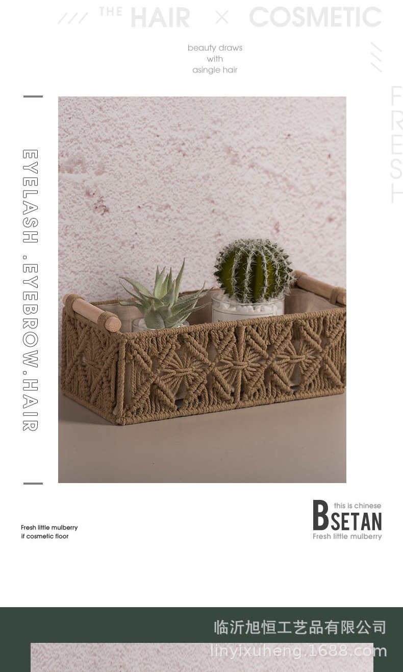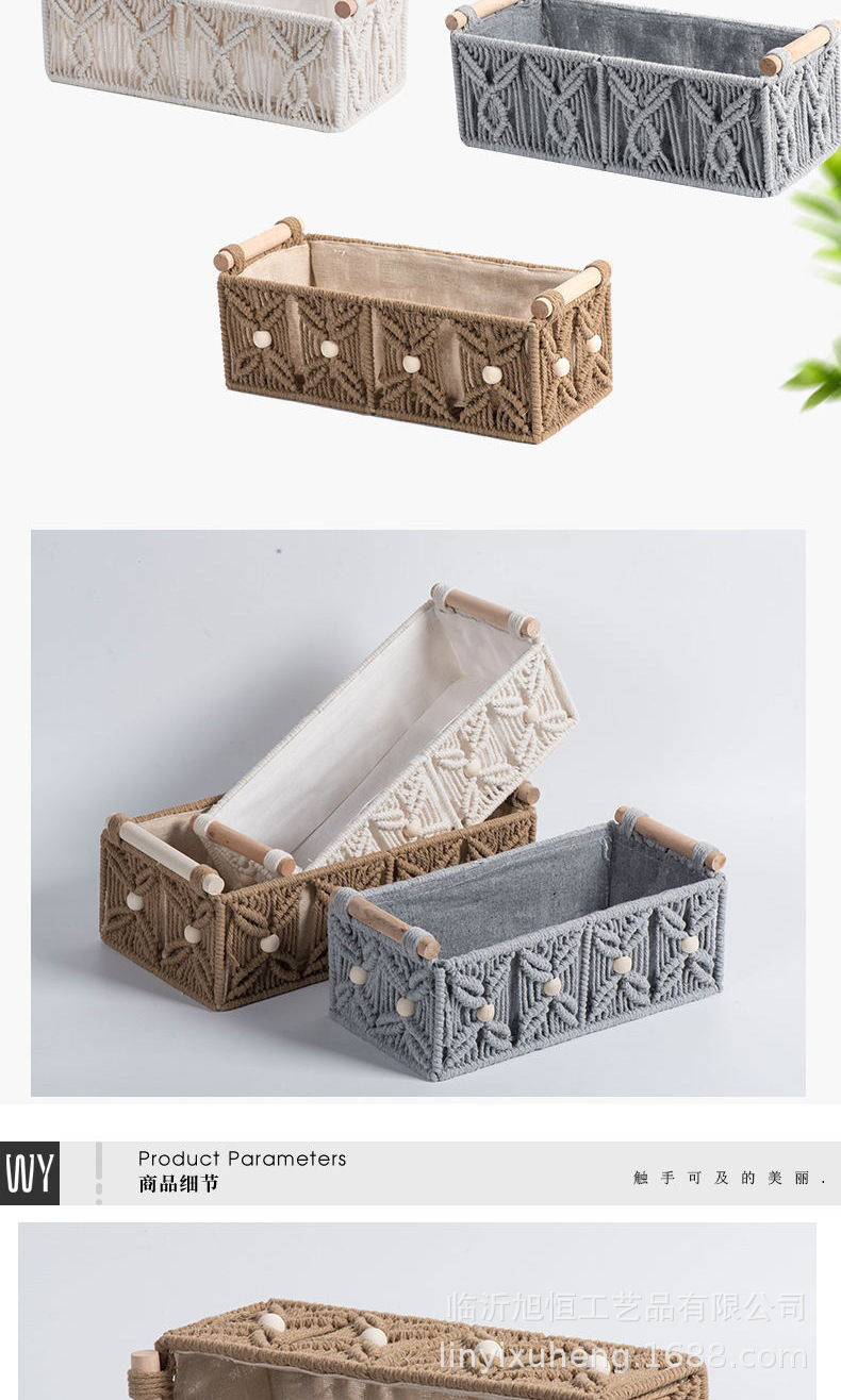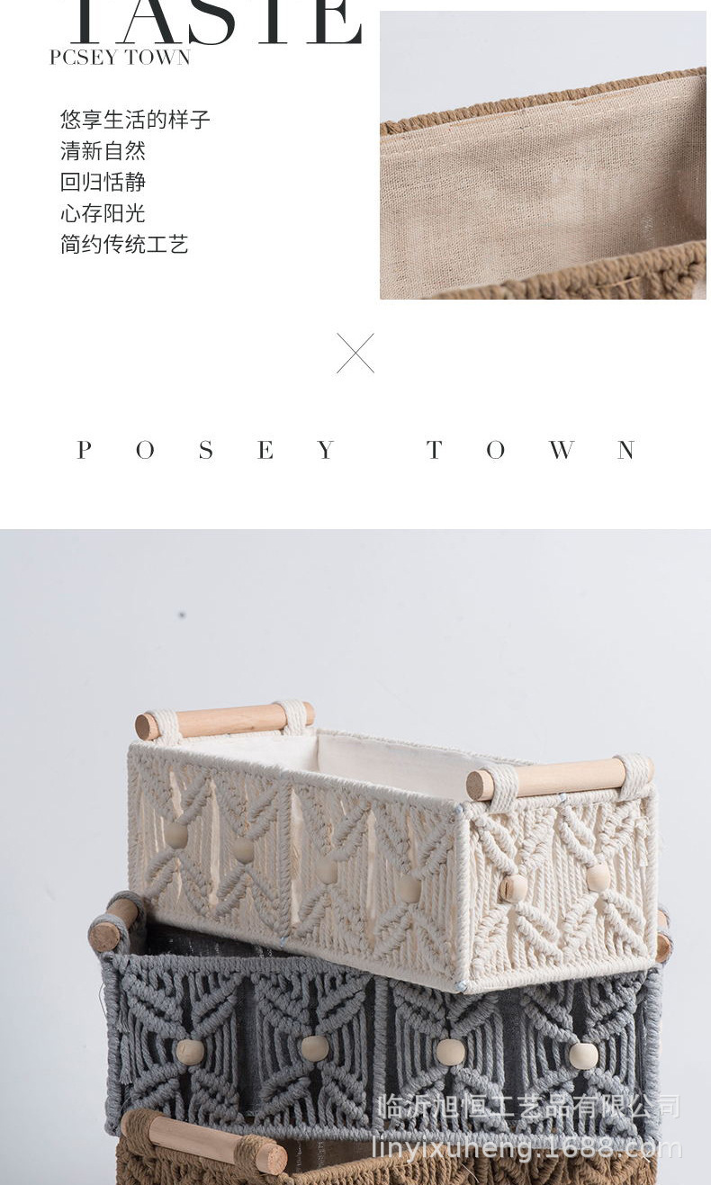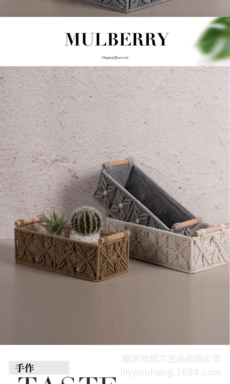 Caja de almacenamiento de cuerda de algodón tejida a mano Caja de almacenamiento de bohemia Cesta de almacenamiento de bocadillos de escritorio Caja de almacenamiento de cosméticos