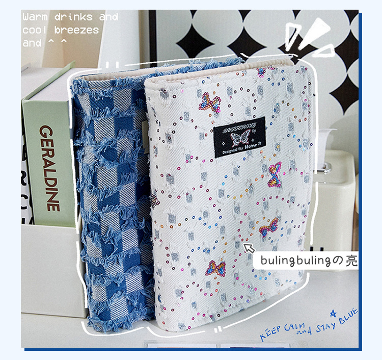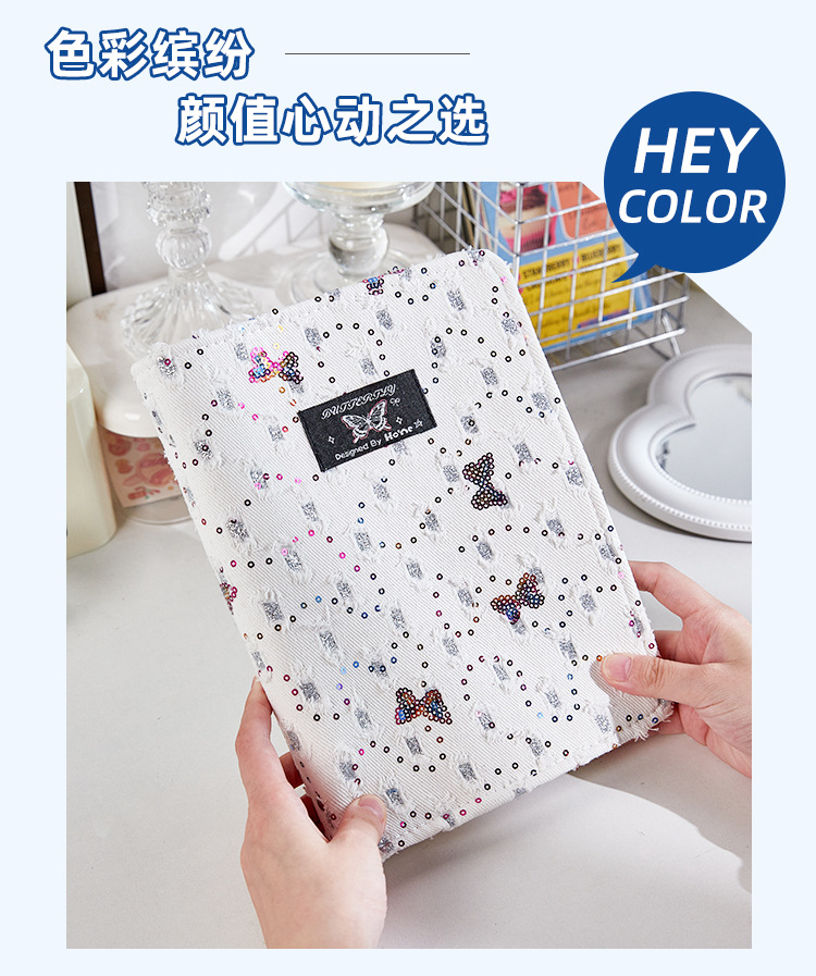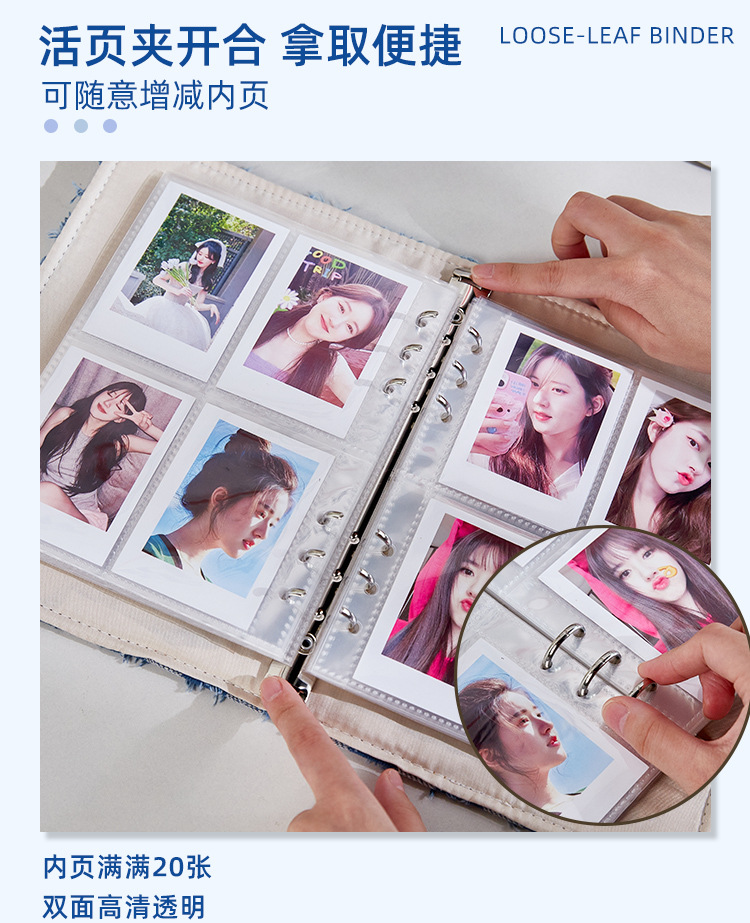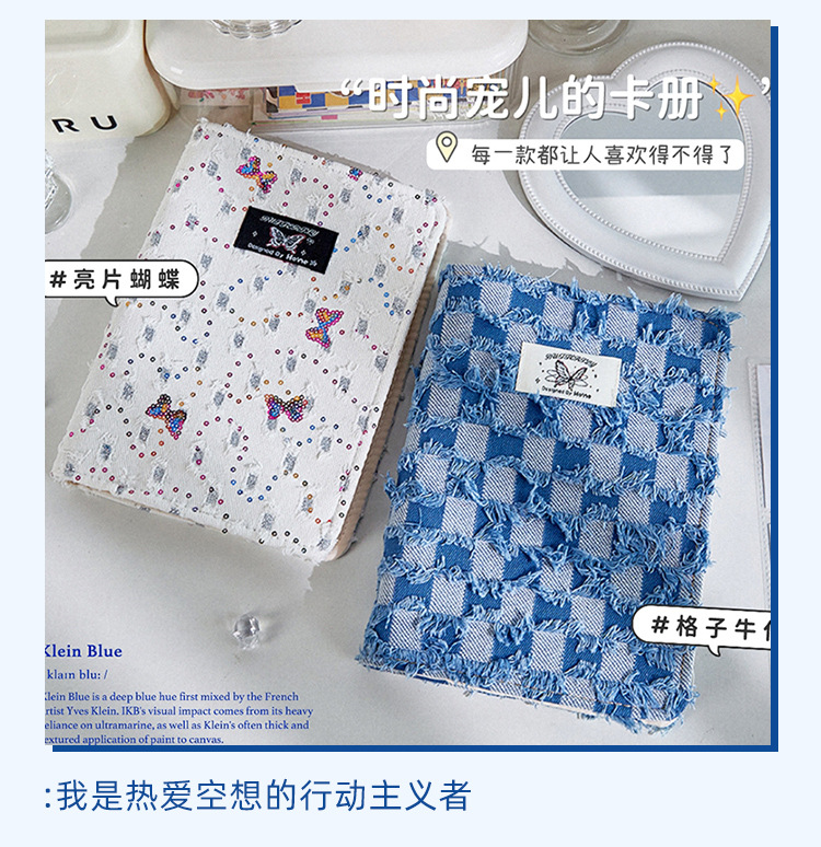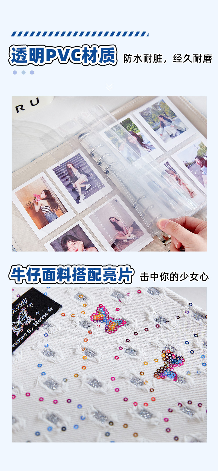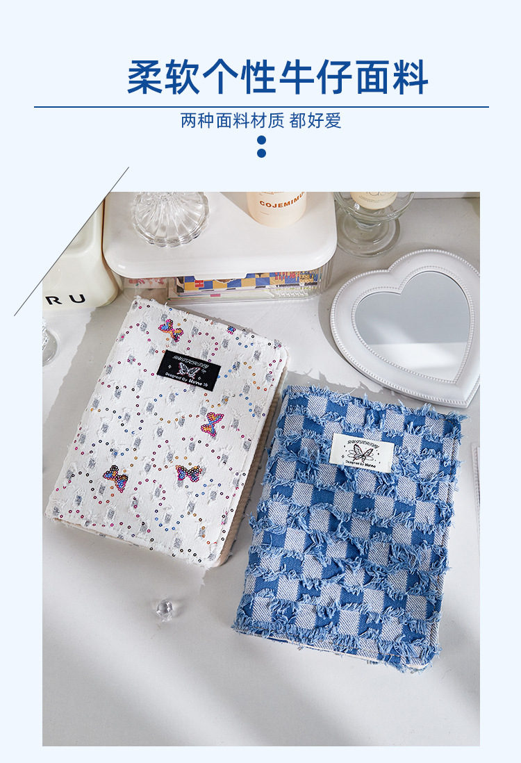 Nuevo álbum de fotos de hojas de vaqueros de 3 pulgadas cuatro cuadros diy amor bean tarjetas de almacenamiento en el viento de alto valor de tela tarjetas