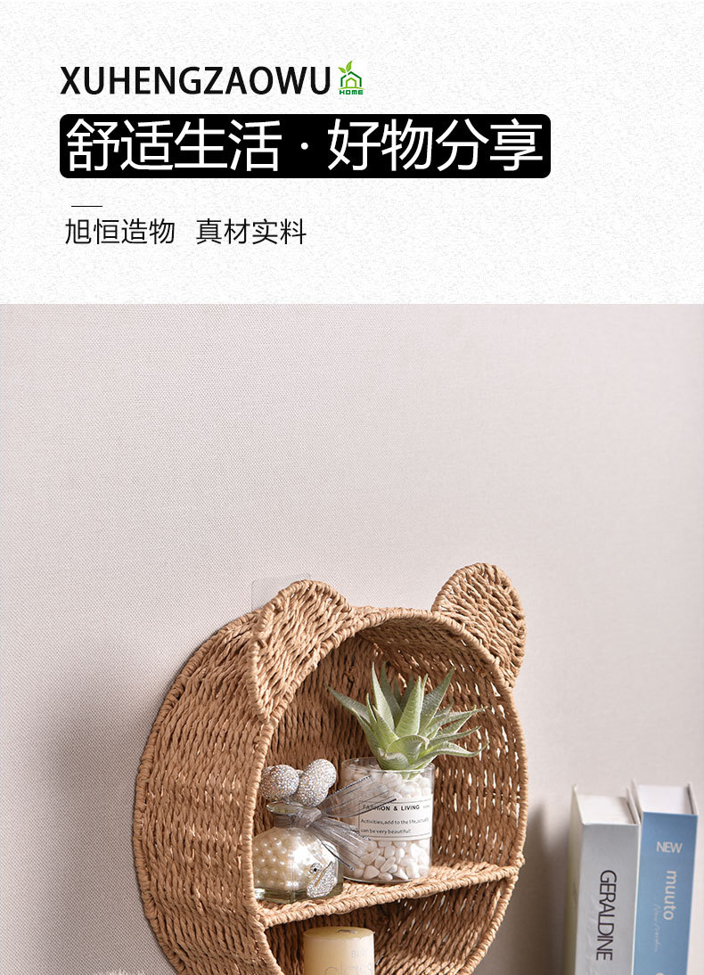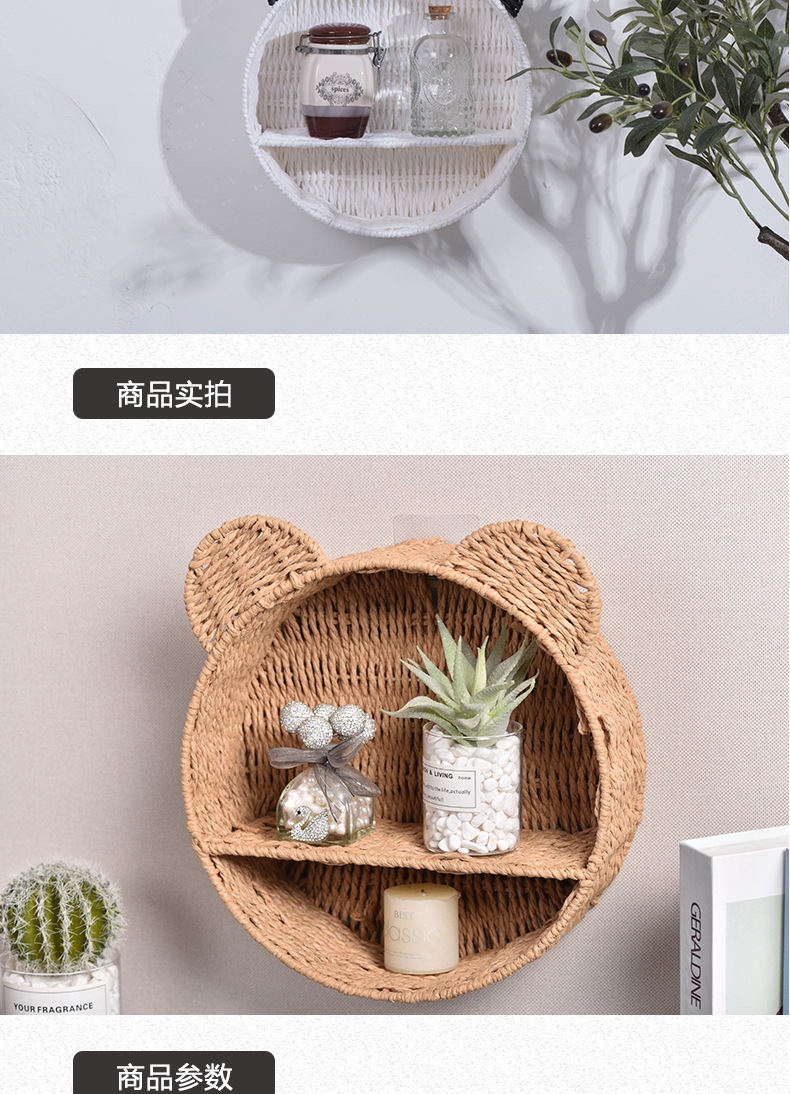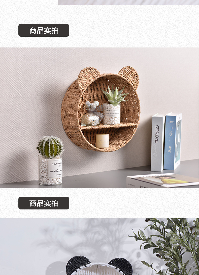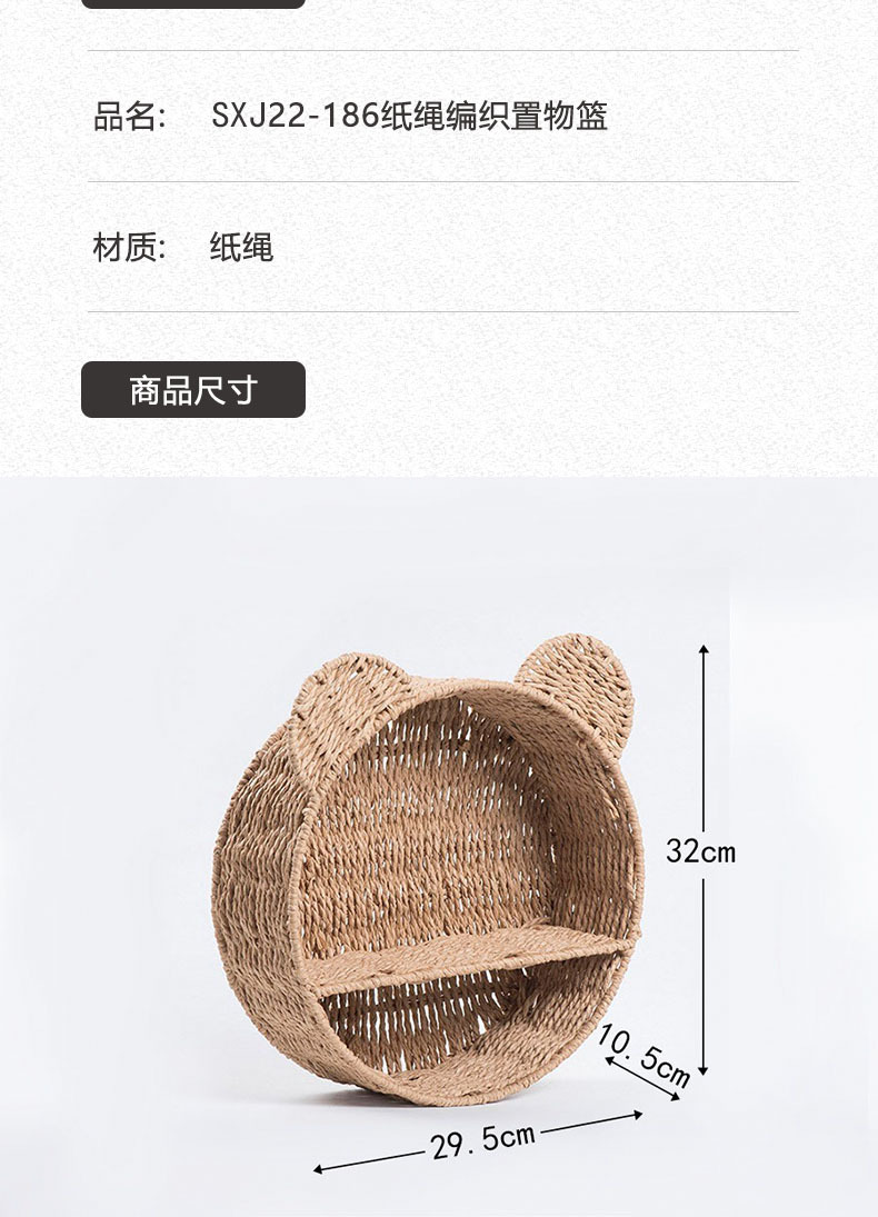 Cesta de almacenamiento de orejas de gato tipo pared tejida a mano cuerda de papel estante de almacenamiento de habitaciones infantiles canasta de almacenamiento creativa