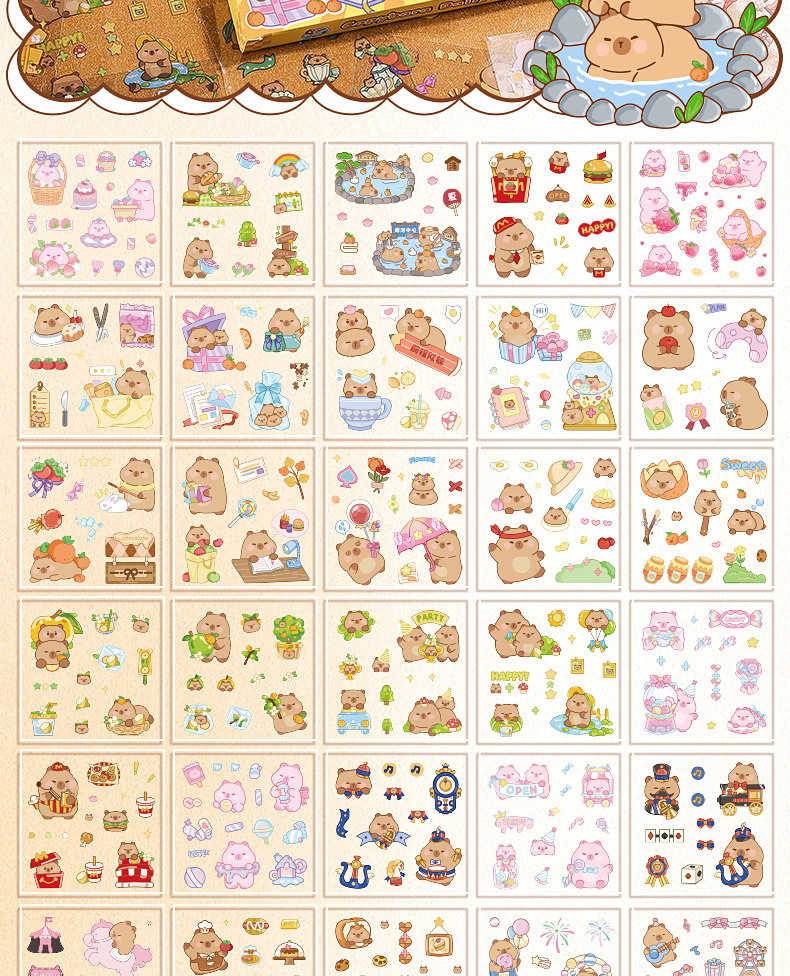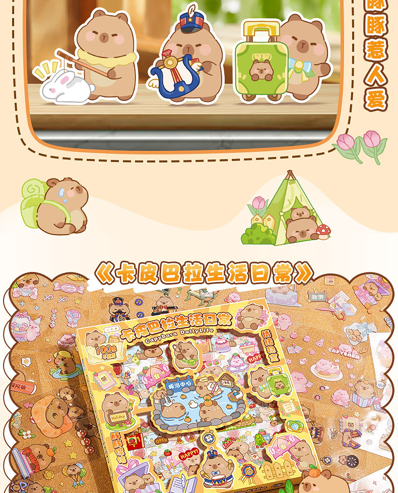 | Color | 100 pegatinas de Pet un poema y una pintura como tinta, 100 pegatinas de pet - Doce dioses de las flores, 100 pegatinas de pet - la vida diaria de kapibala |