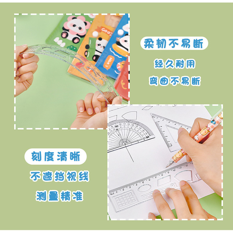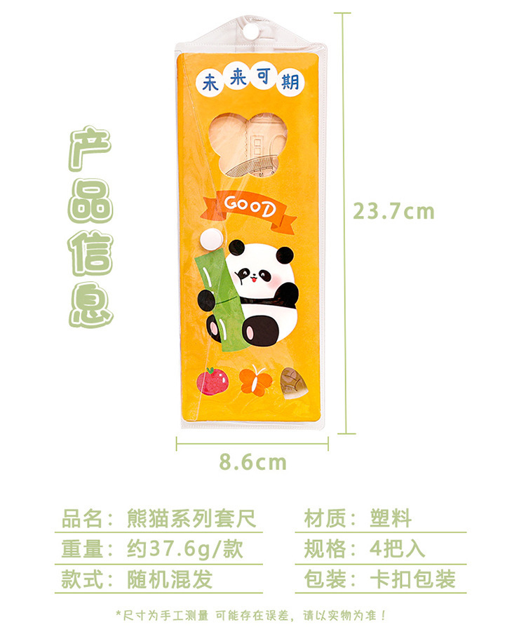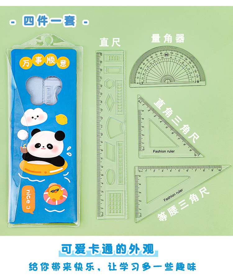 Panda juego de reglas para estudiantes, cuatro piezas para estudiantes de secundaria primaria y secundaria, reglas para niños de primer y segundo grado.