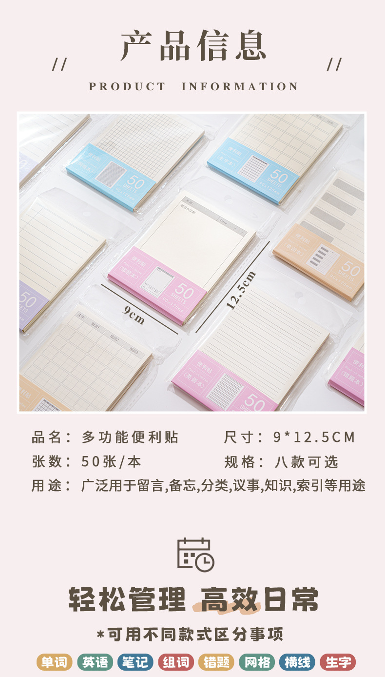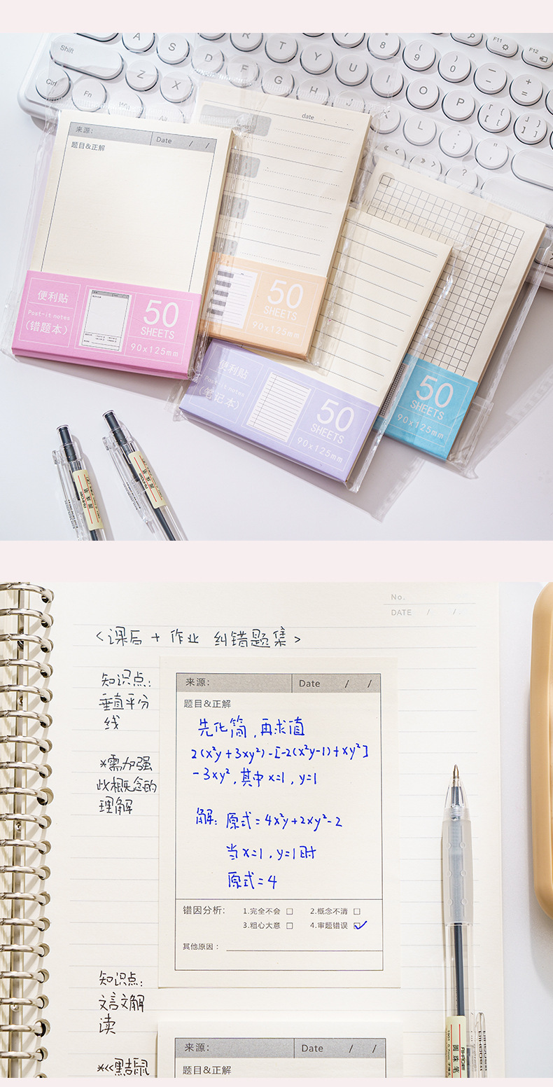 pegatinas de notas con líneas horizontales adhesivas especiales para estudiantes de primaria matemáticas chinas corrección de errores pegatinas de notas de clase