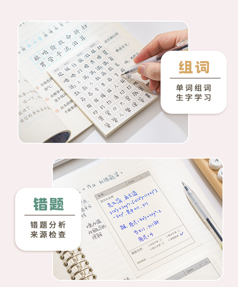 | Color de la portada | Libro de preguntas equivocadas, libro de palabras, libro de cuadrícula, libro horizontal, libro de inglés, cuaderno, libro de palabras, libro de palabras nuevas |